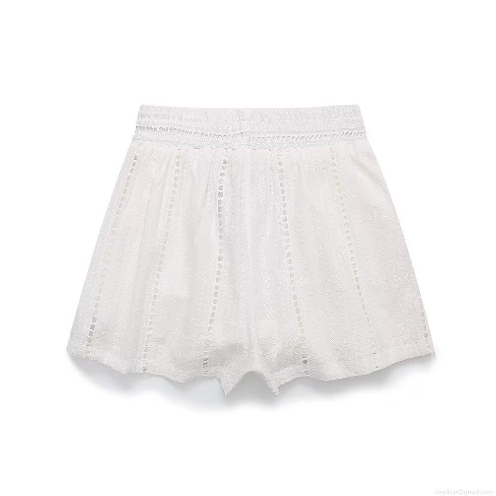Solid Color, Embroidery, Hollow Out, Openwork Embroidery, Wavy Edge, High-waisted