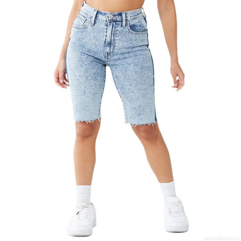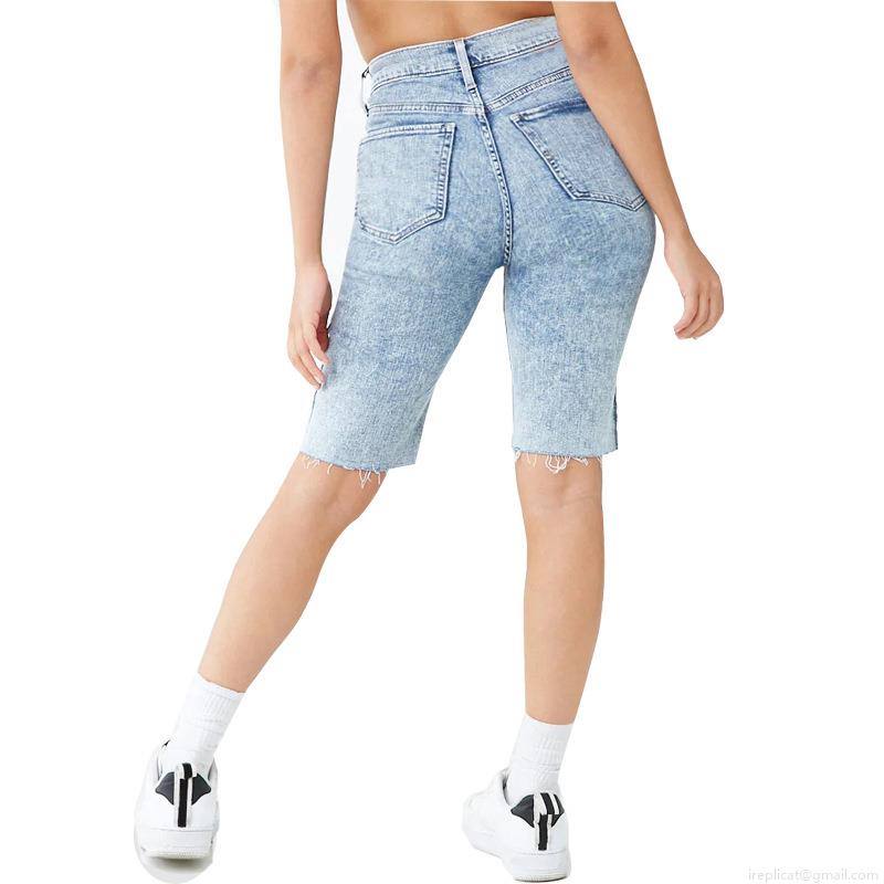 • Women's Denim Biker Shorts Contrast Side Stripe High Stretch Cotton Blend Washed Raw Hem Mid Waist Skinny Cycling Shorts Summer Streetwear