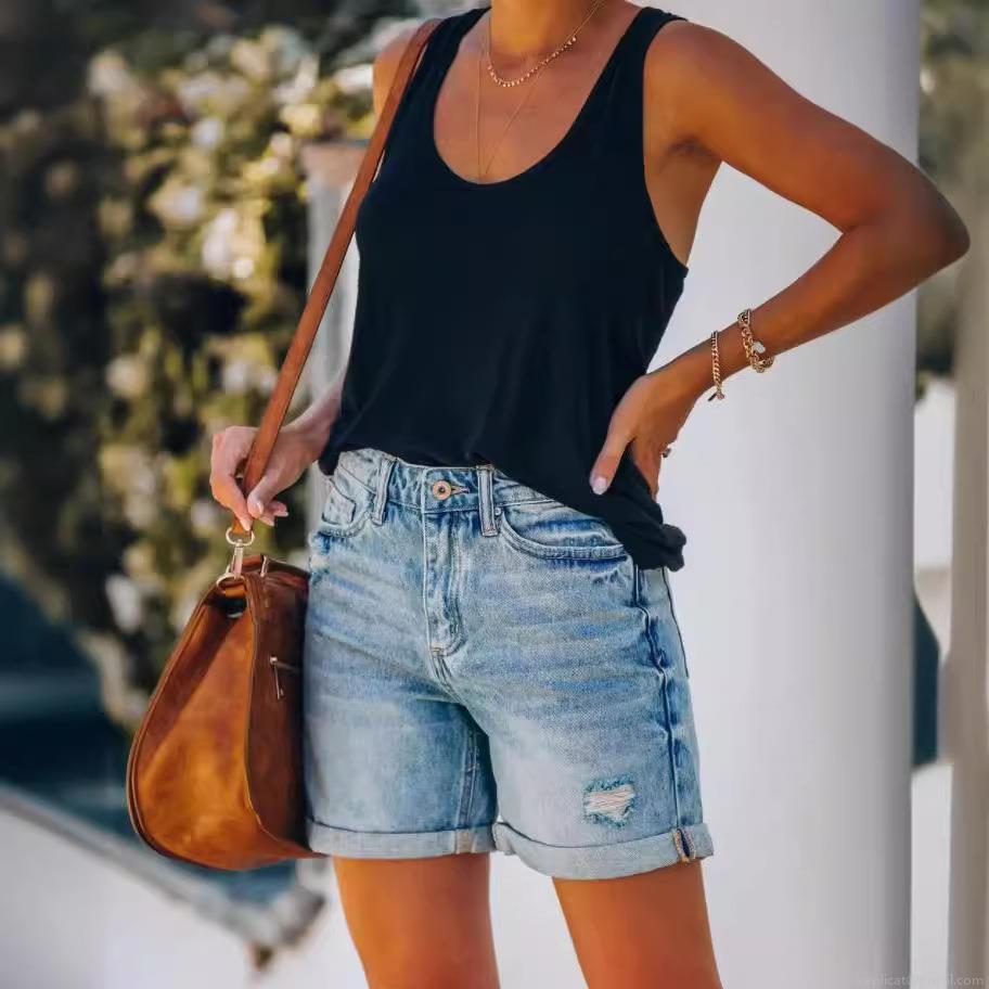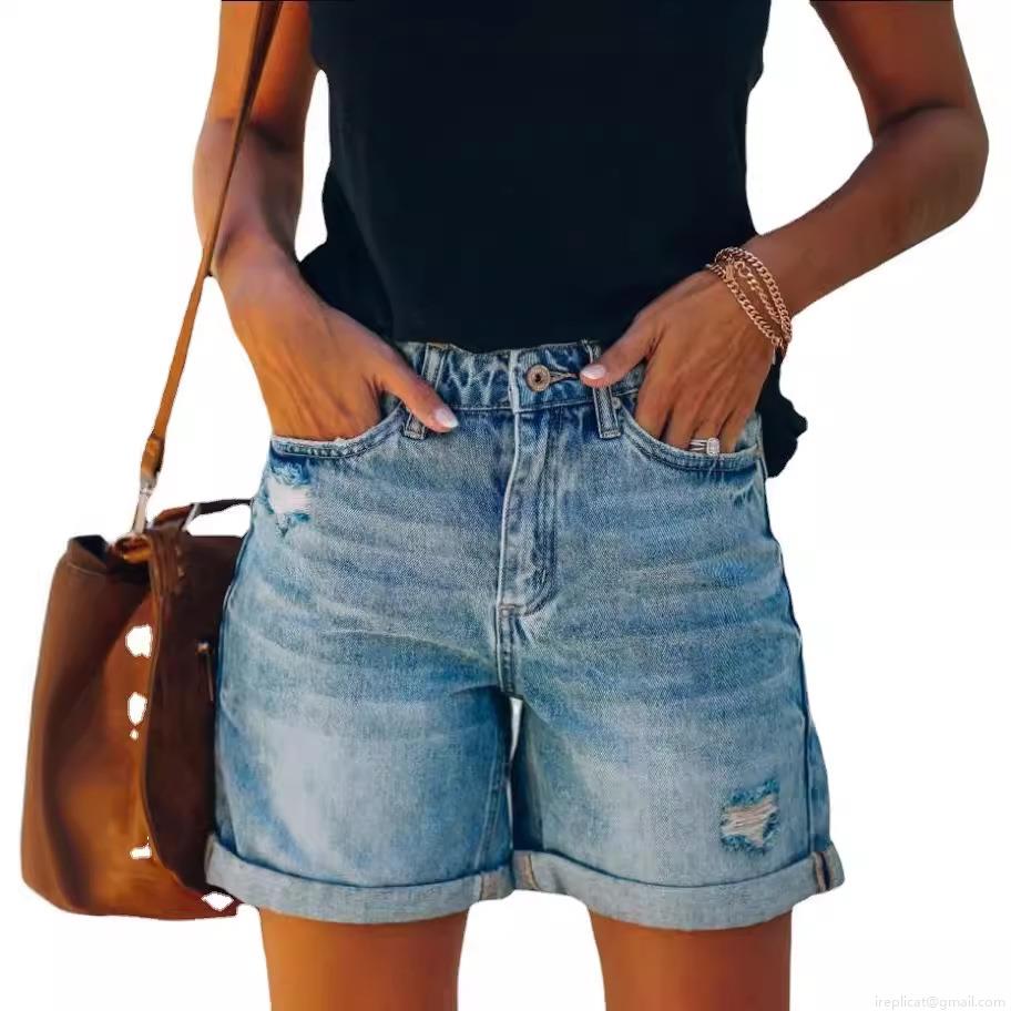 • Women's Denim Shorts Washed Distressed Ripped High Waisted Straight Leg Jean Shorts For Summer Casual Daily Wear Fashion Sexy Denim Shorts With Rolled Cuffs Polyester Blend