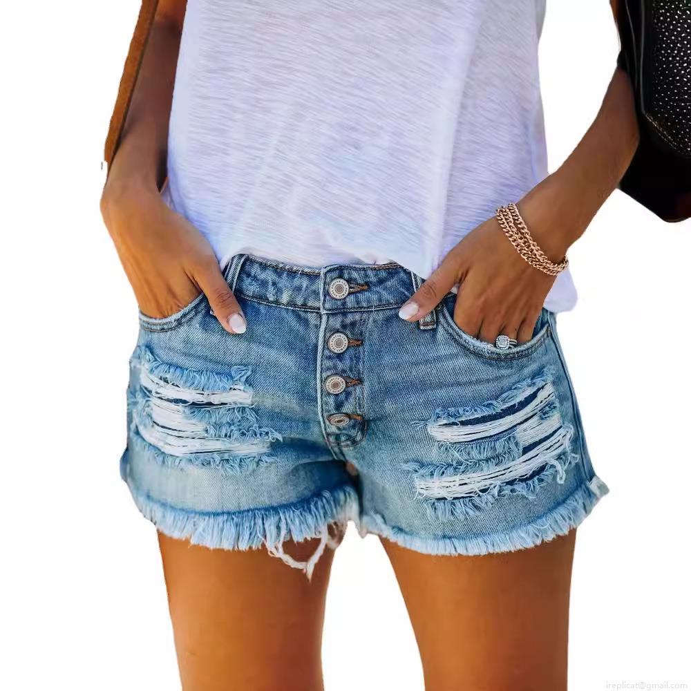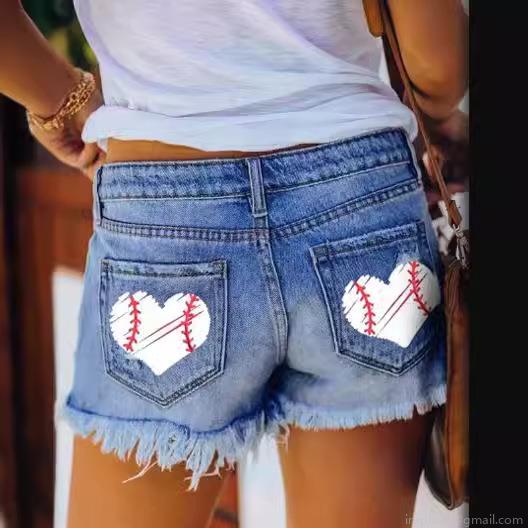 • Women's Distressed Denim Shorts Fashion High Waisted Button Fly Frayed Hem Ripped Jean Shorts With Heart Print Summer Casual Streetwear Hot Pants