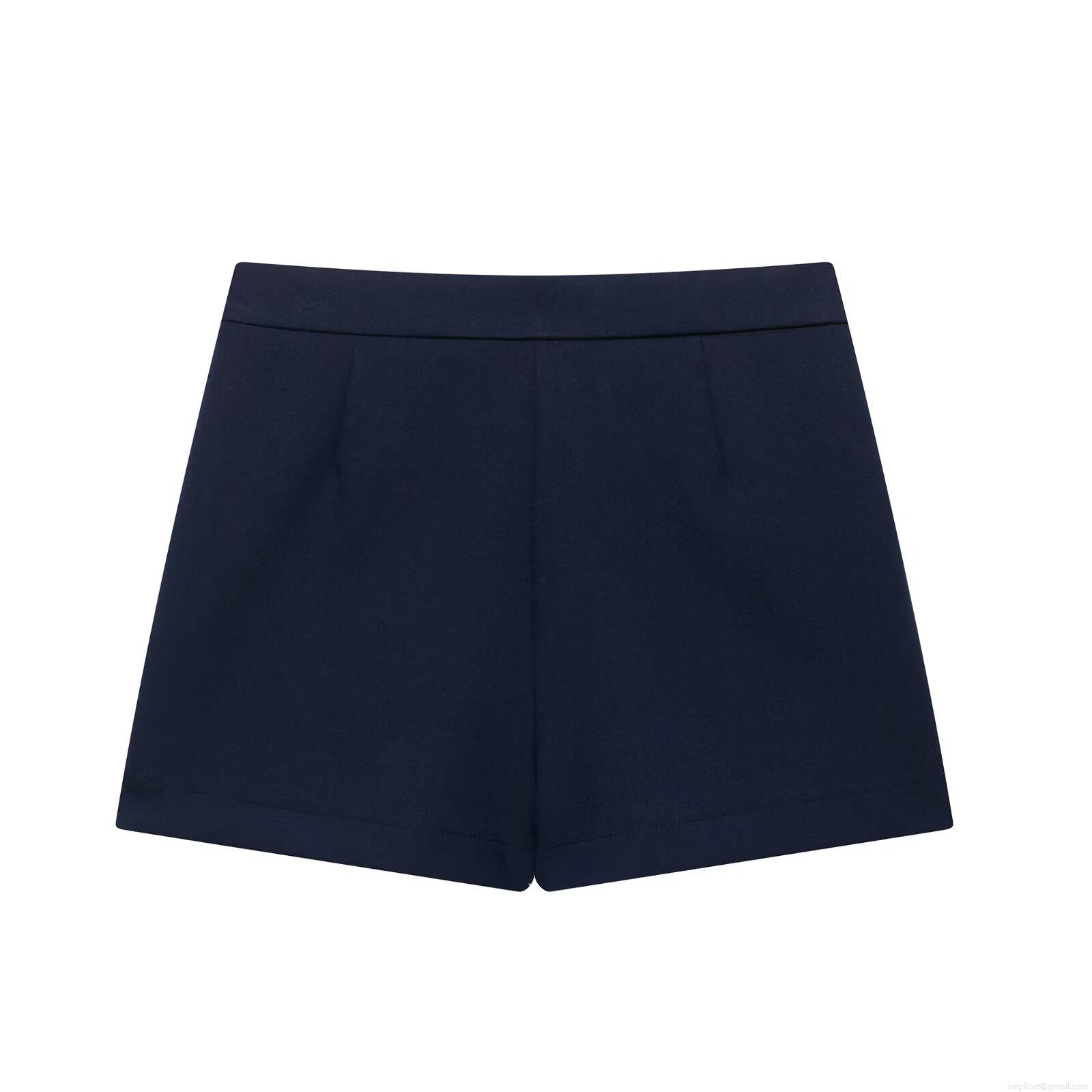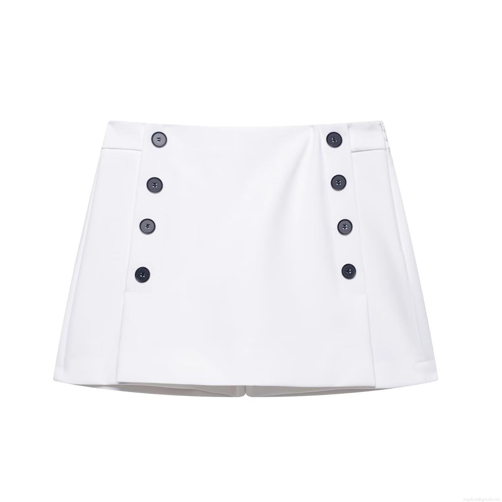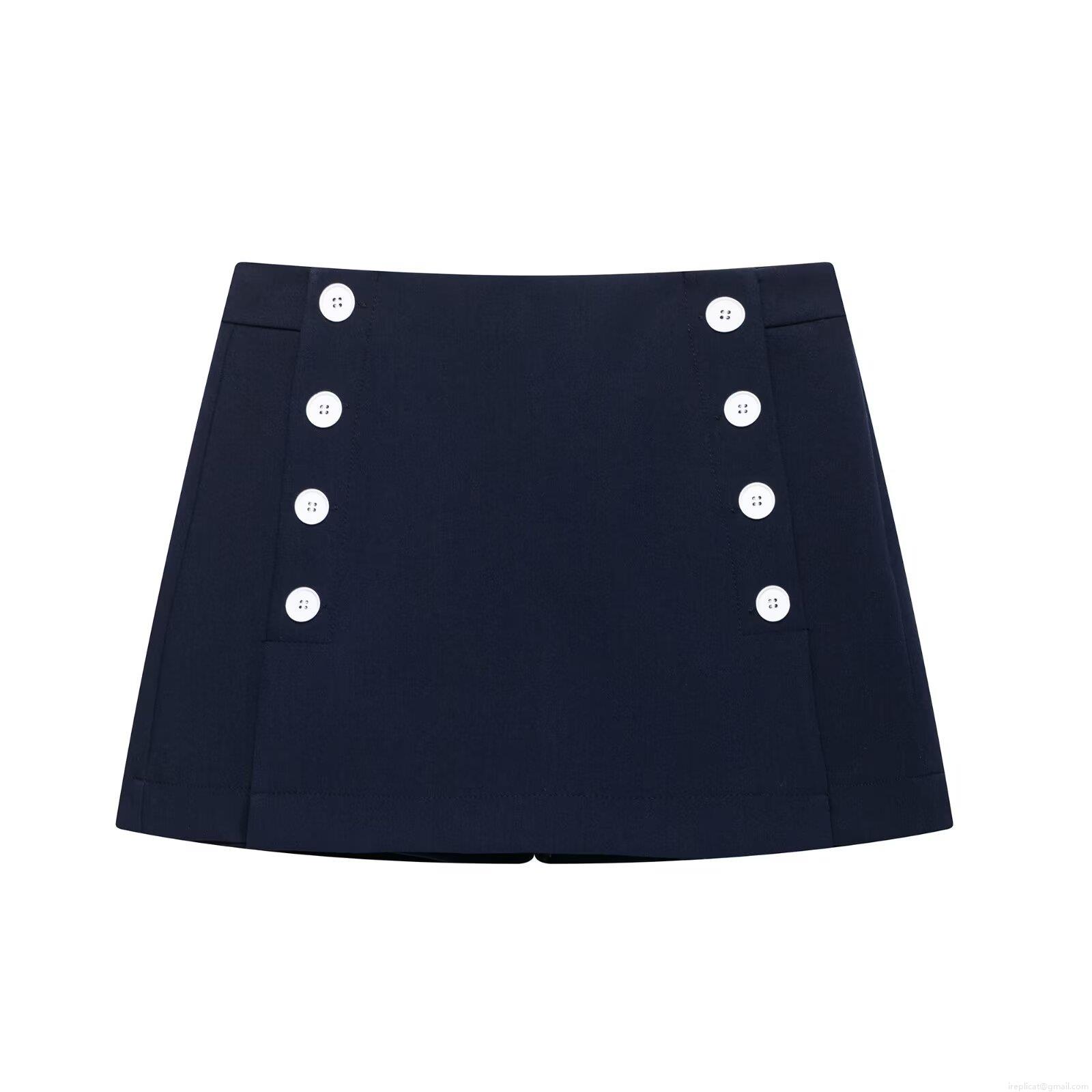 Women's Double Breasted A-Line Skort 100% Polyester High Waist Mini Skirt Shorts Nautical Style For Summer Daily Streetwear Elegant Lady Bottoms