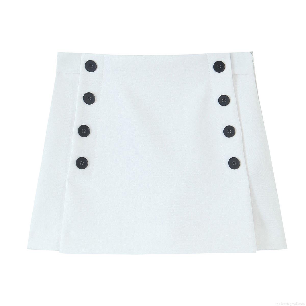 • Women's Double Breasted A-Line Skort Shorts Summer Solid Color Polyester High Waist Streetwear Casual Bottoms for Ladies