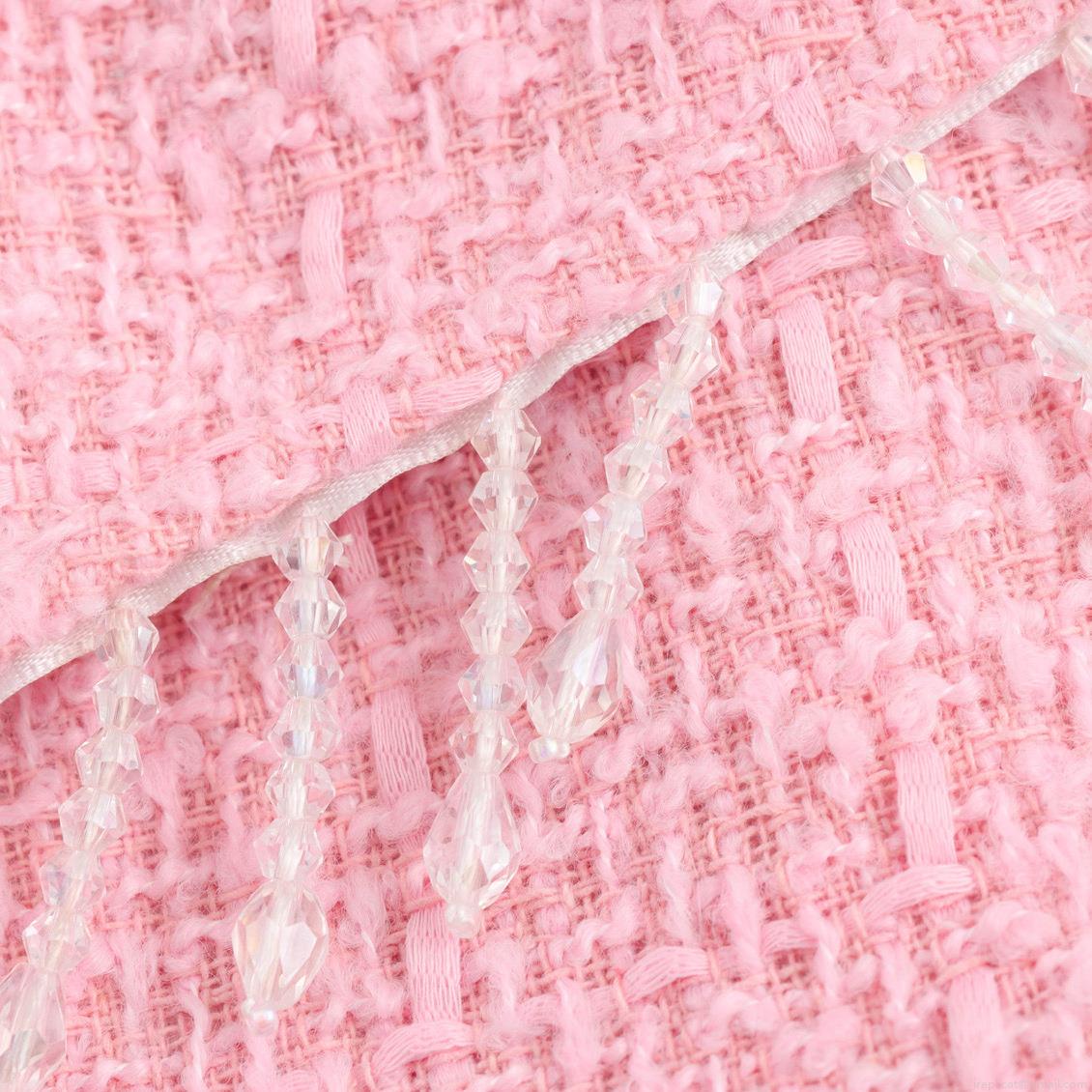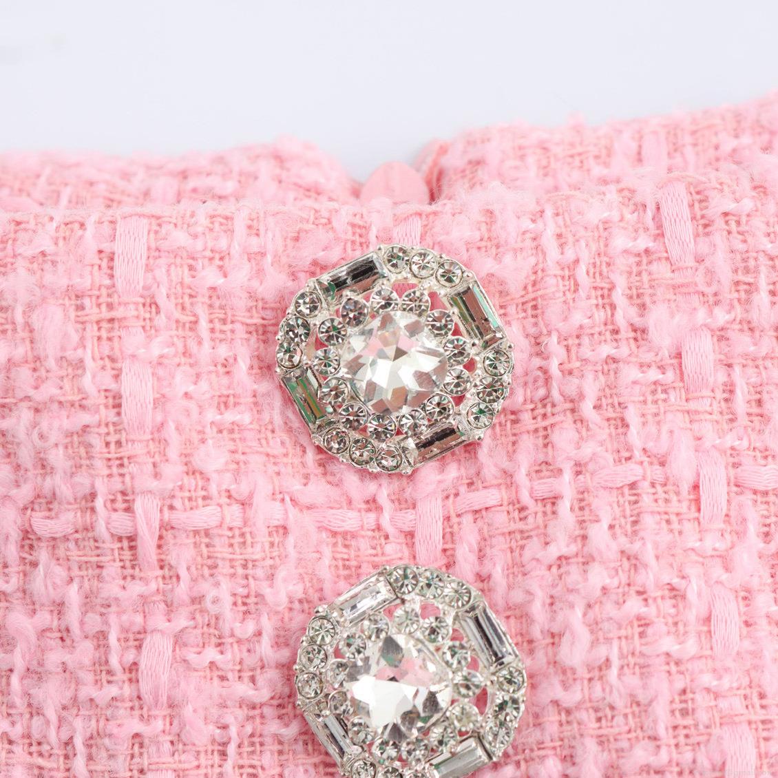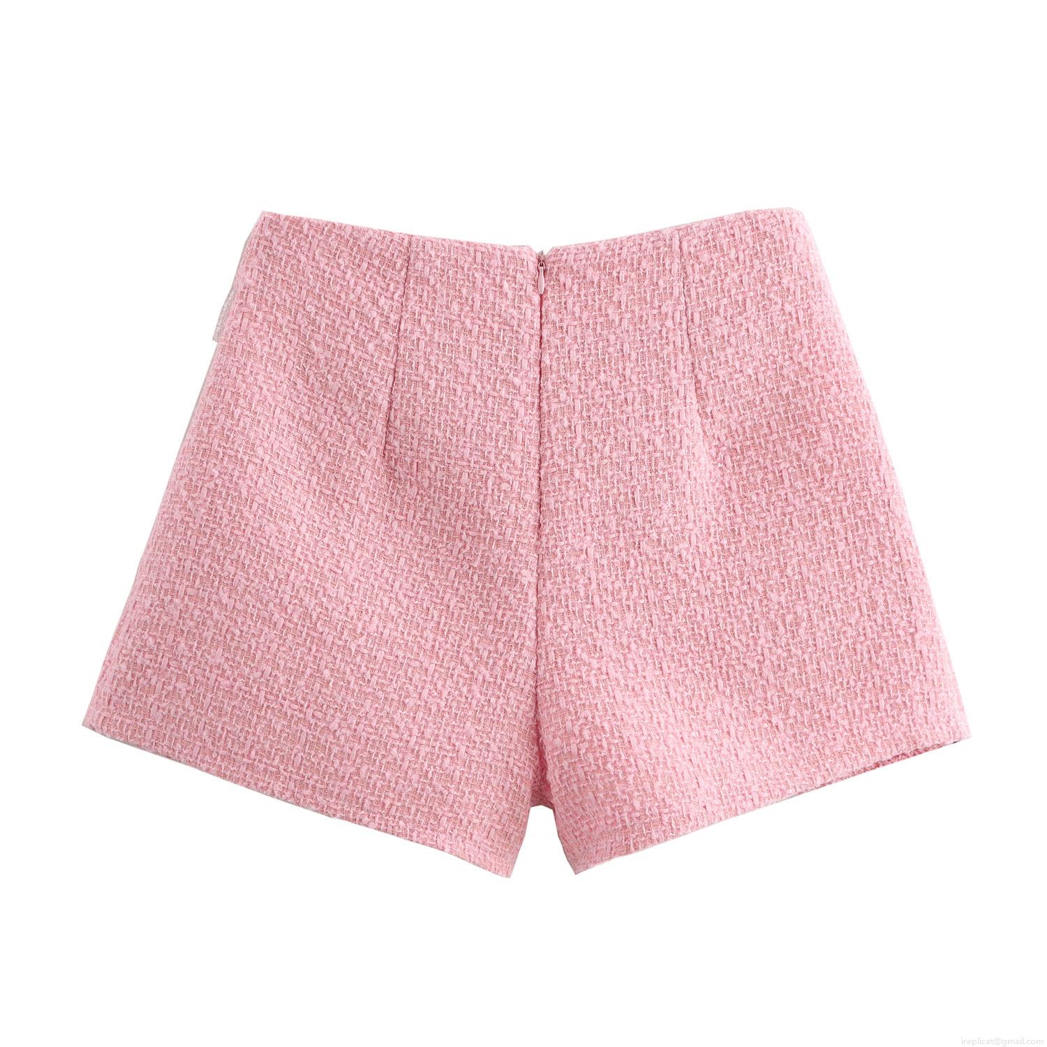 • Women's Elegant Pink Tweed Shorts With Sparkling Rhinestone Buttons And Fringed Tassel Hem High Waist A-Line Short Pants For Party Daily Wear