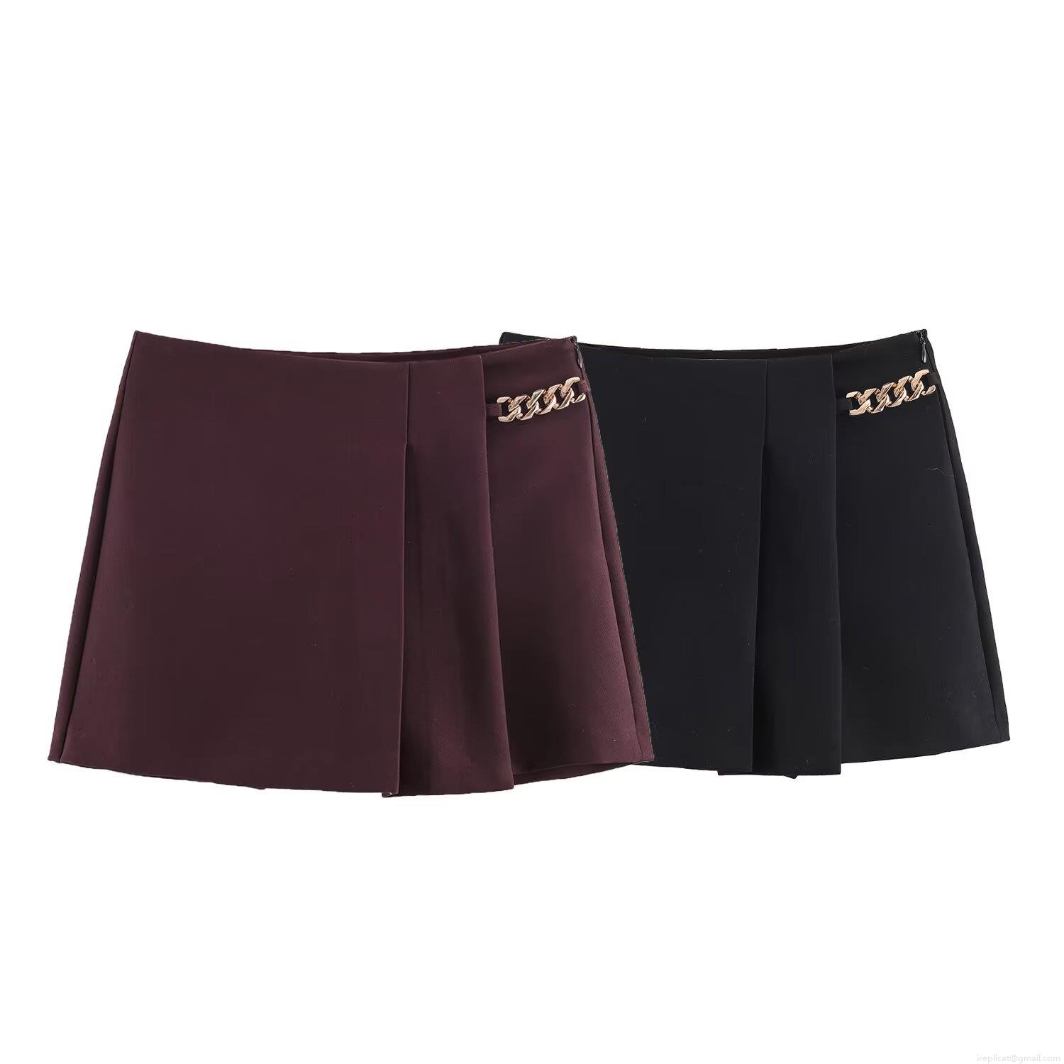 • Women's Fashion High Waist Pleated Shorts With Metal Chain Decor Sexy A-Line Skort For Party Clubwear Casual Summer Bottoms Polyester Spandex