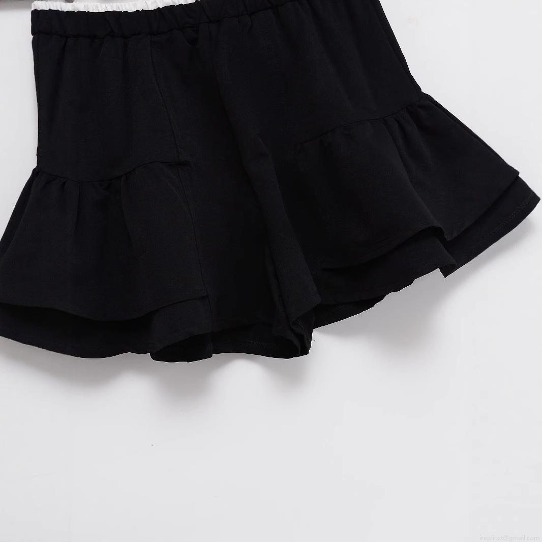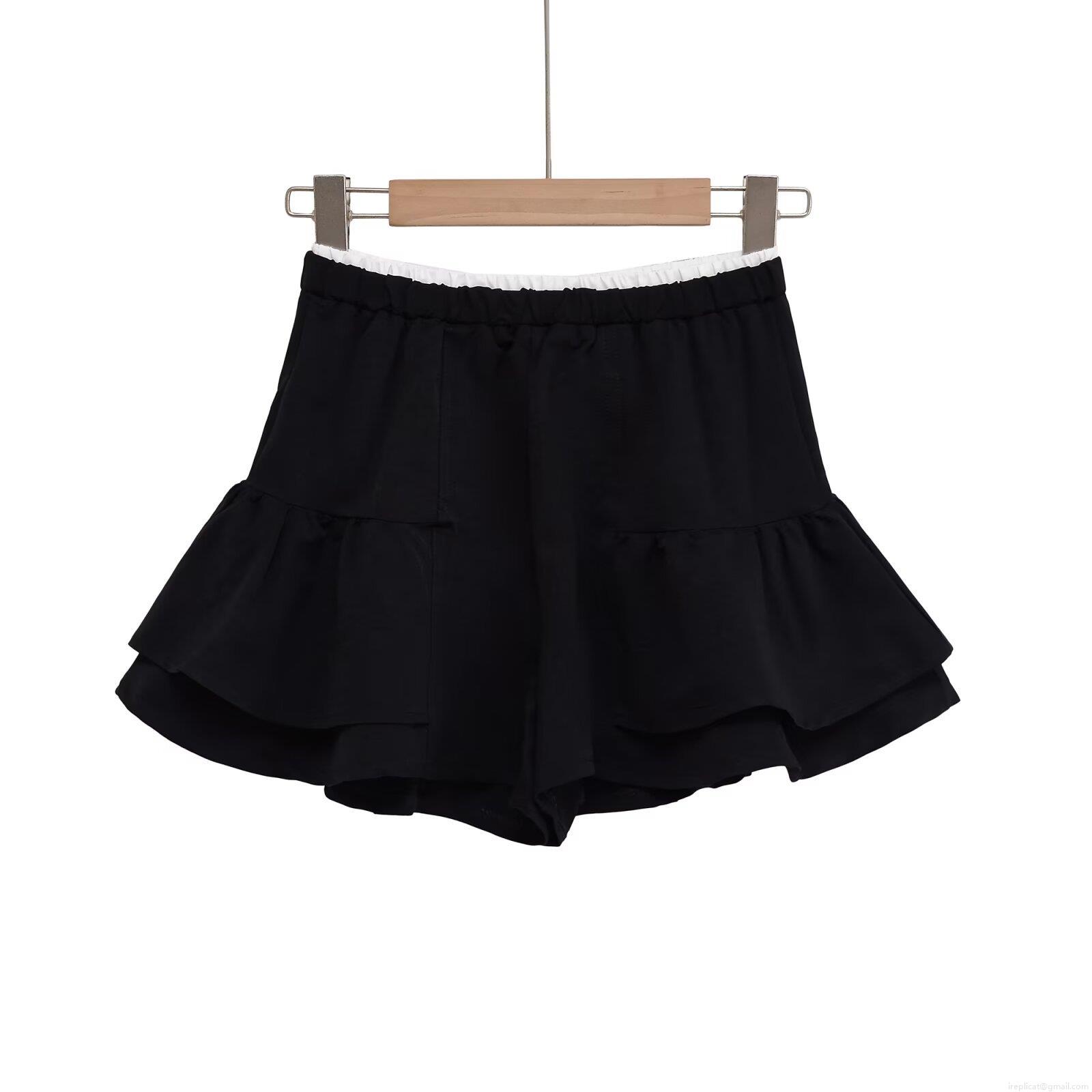 Women's Fashion Ruffle Skort Layered Polyester Shorts High Waist Elastic Waist Solid Black Mini Skirt For Summer Streetwear Casual Party