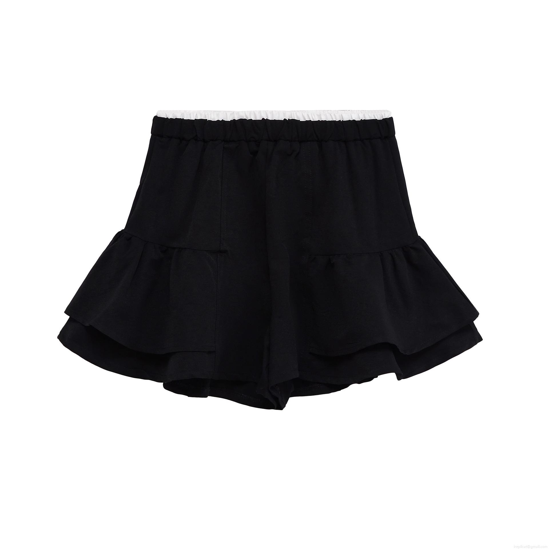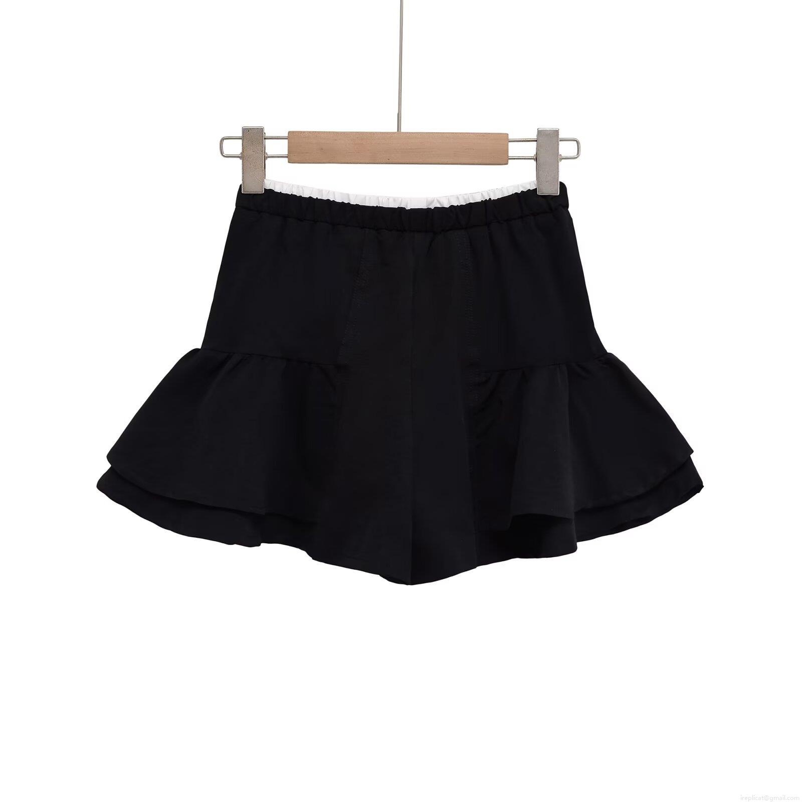 • Women's Fashion Ruffle Skort Layered Polyester Shorts High Waist Elastic Waist Solid Black Mini Skirt For Summer Streetwear Casual Party