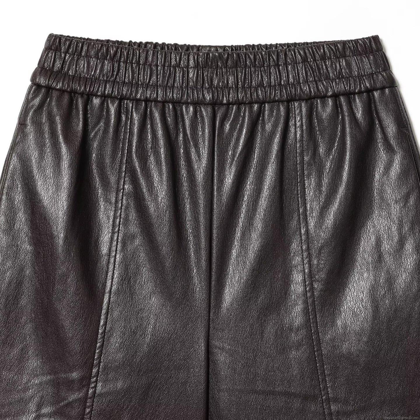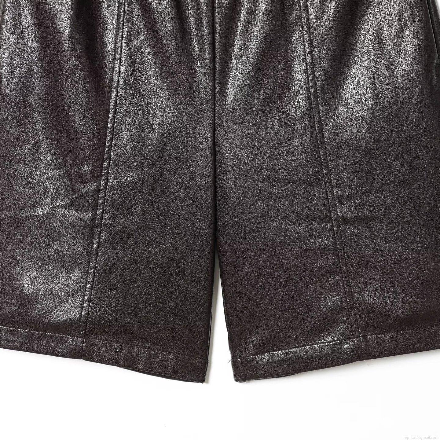 • Women's Faux Leather Shorts High Waist Elastic Waist Mid Length Straight Leg Casual PU Leather Five-Point Shorts Coffee Solid Color Winter Fashion Ladies Bottoms