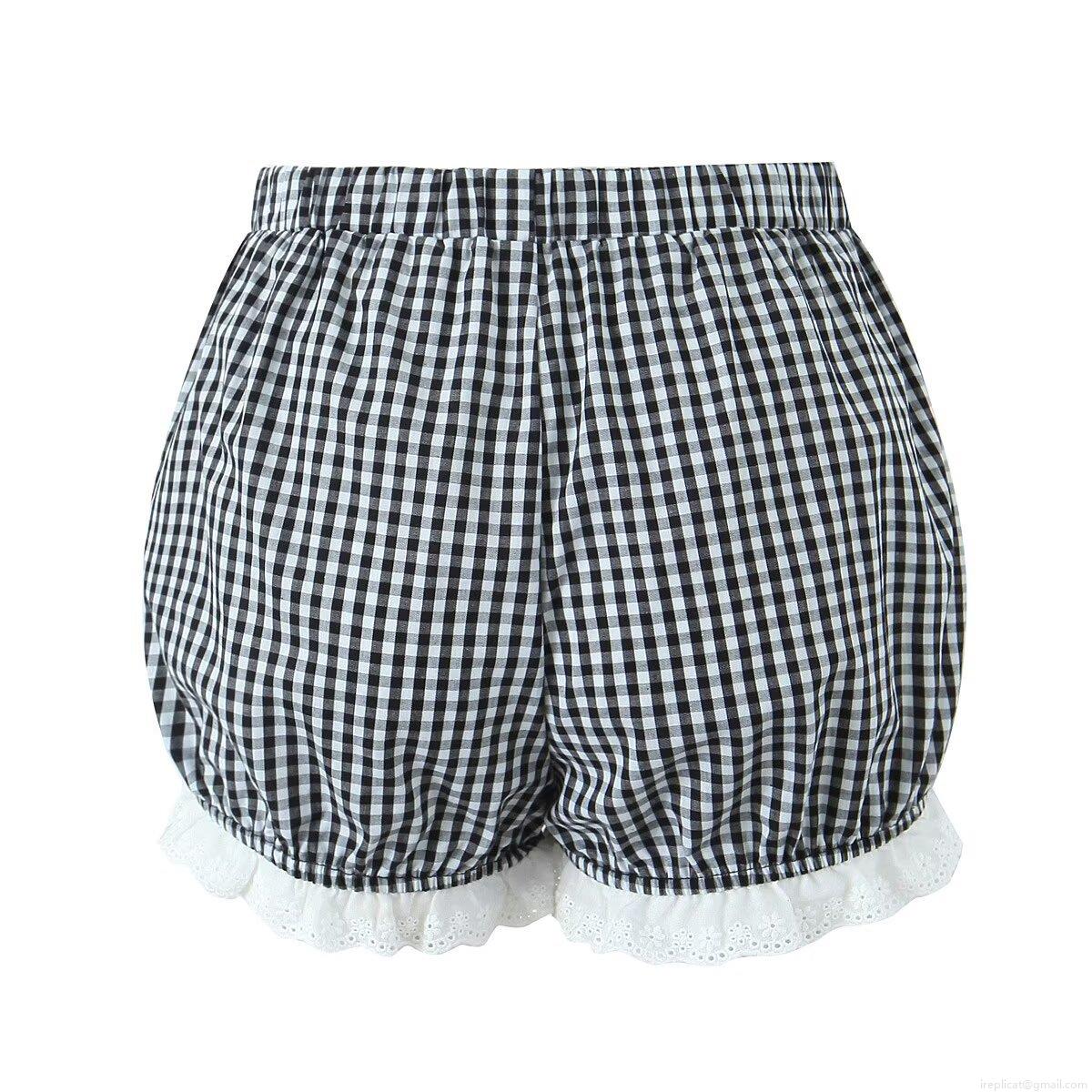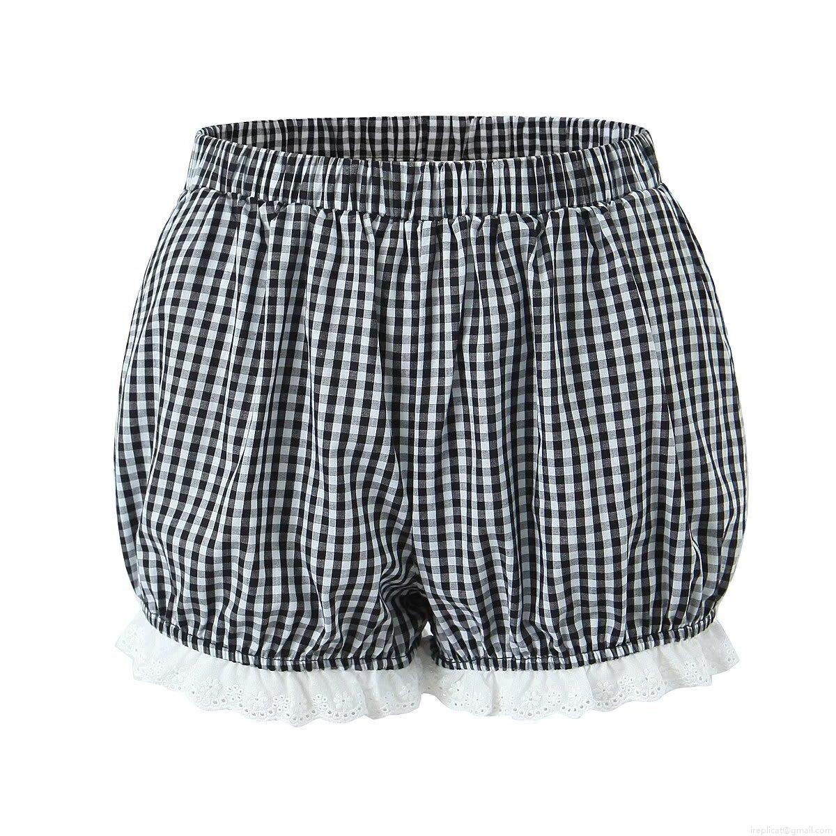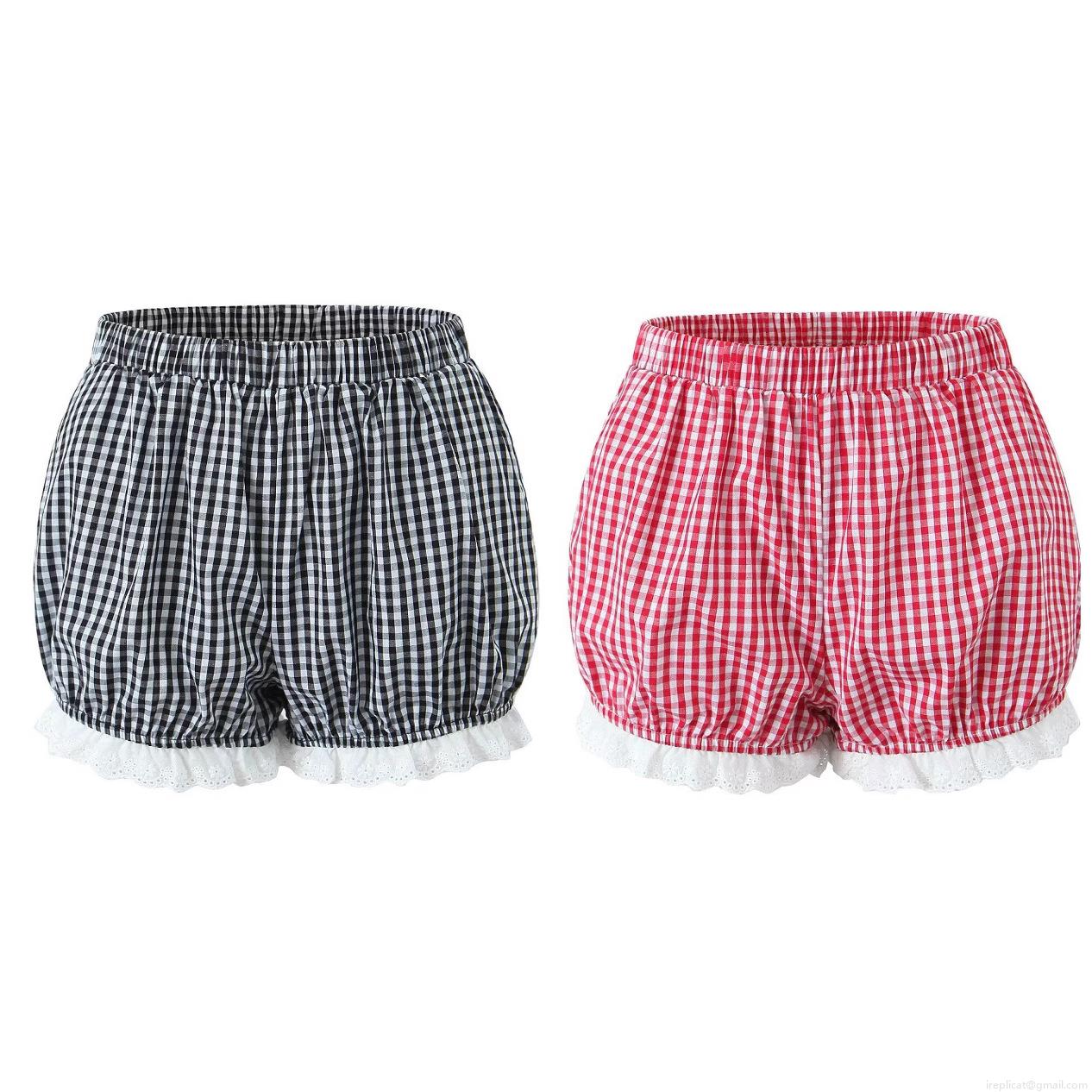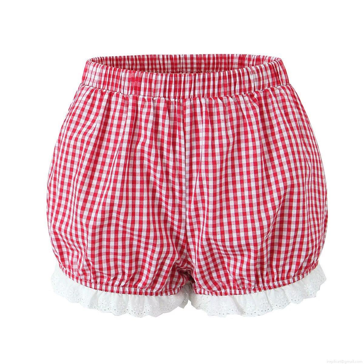 Women's Gingham Lace Trim Shorts Elastic Waist Plaid Bloomers Pumpkin Pants Streetwear Bottoms Summer Beach Casual Wear for Women