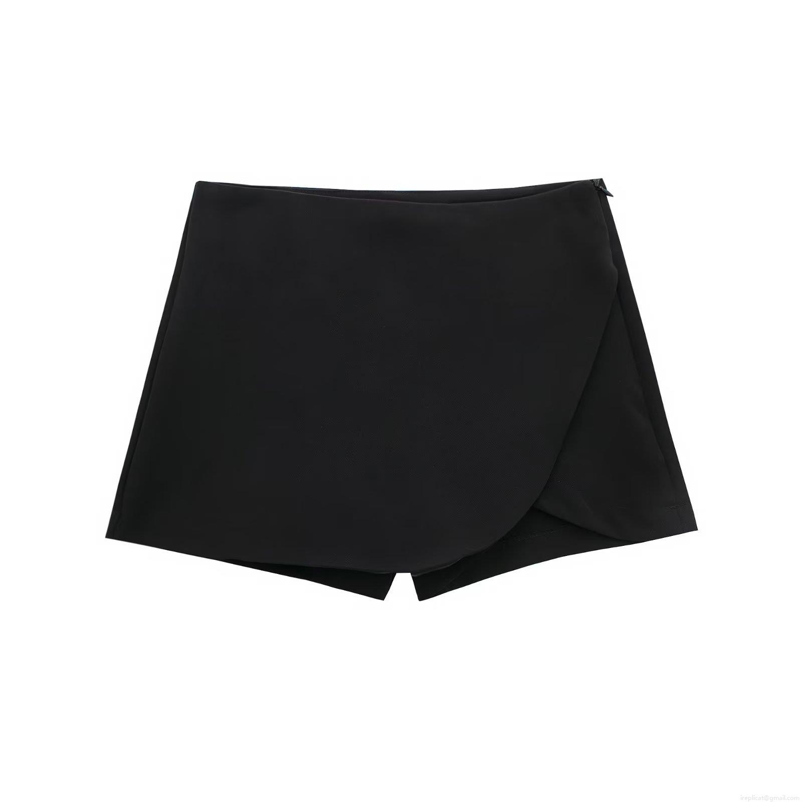 • Women's High Waist Asymmetric Wrap Skort Solid Color Polyester Short Pants With Side Zipper Casual Streetwear Summer Slim Fit Skirt Shorts For Ladies