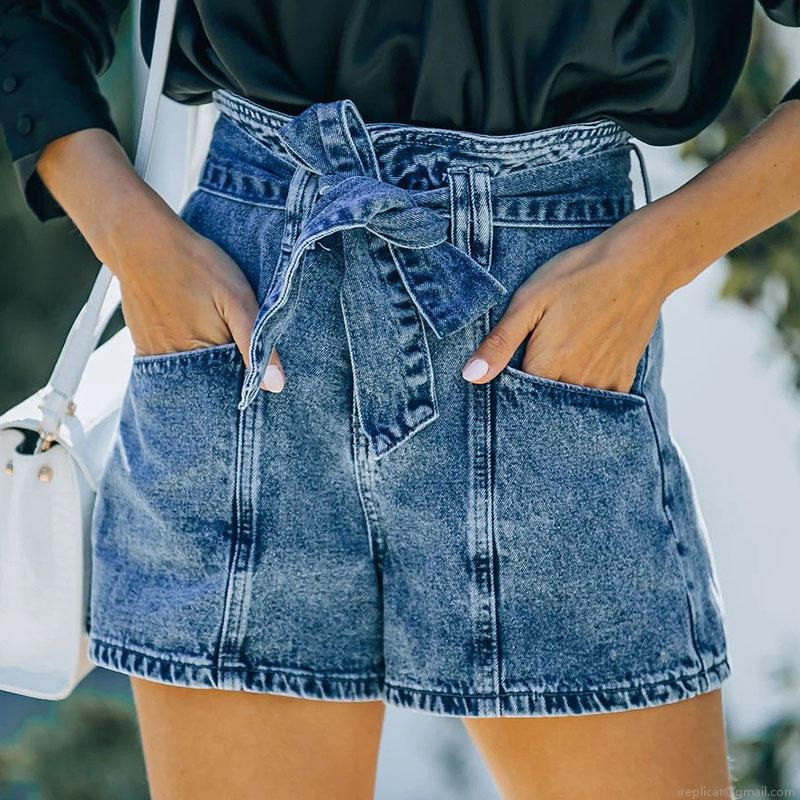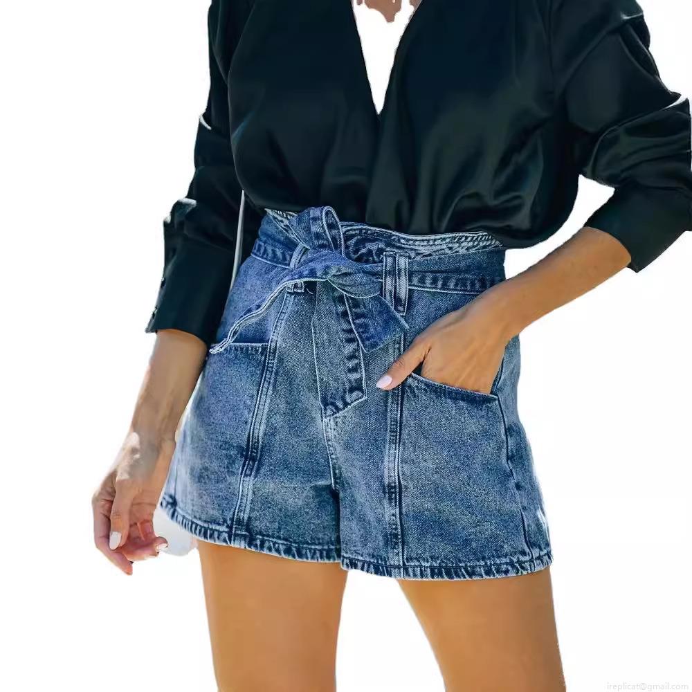 • Women's High Waist Denim Shorts With Removable Belt Retro Washed Straight Leg Jean Shorts Casual Summer Paperbag Cotton Blend Bottoms For Women