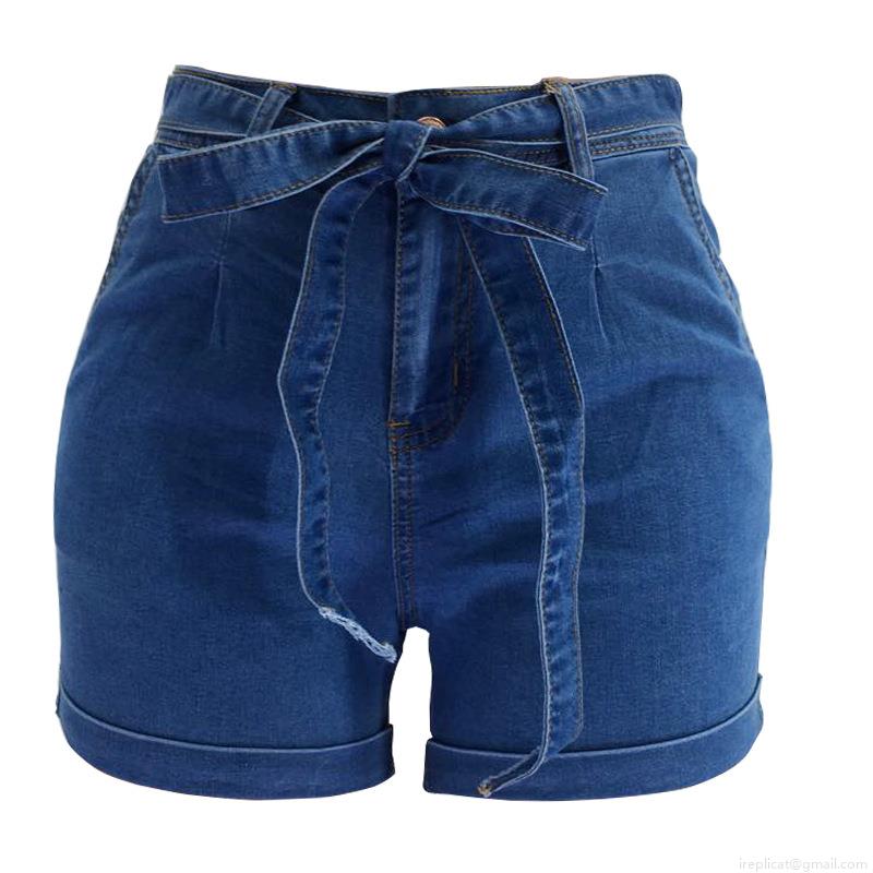 • Women's High Waist Denim Shorts With Tied Bow Belt Sexy Slim Fit Butt Lifting Cotton Blend Jean Shorts For Summer Casual Streetwear Ladies