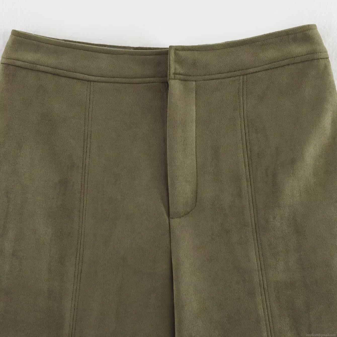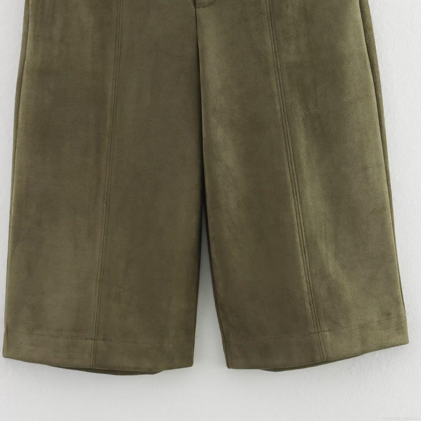 • Women's High Waist Faux Suede Shorts Army Green Wide Leg Knee Length Shorts Casual Straight Shorts With Pockets For Women Autumn Fashion