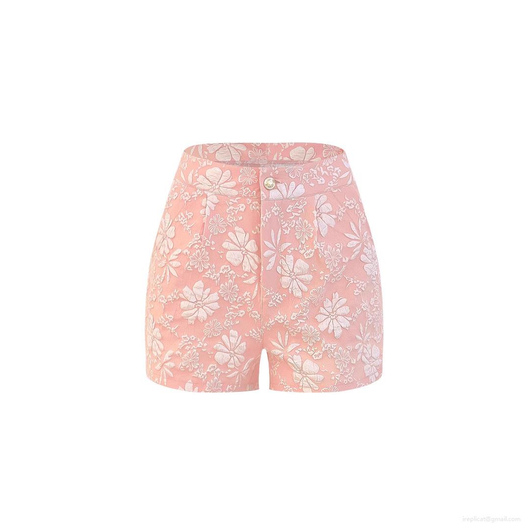 Women's High Waist Jacquard Floral Shorts Summer Casual Slim Fit Mini Pants With Pockets Elegant Textured Polyester Spandex Shorts Pink Black Green