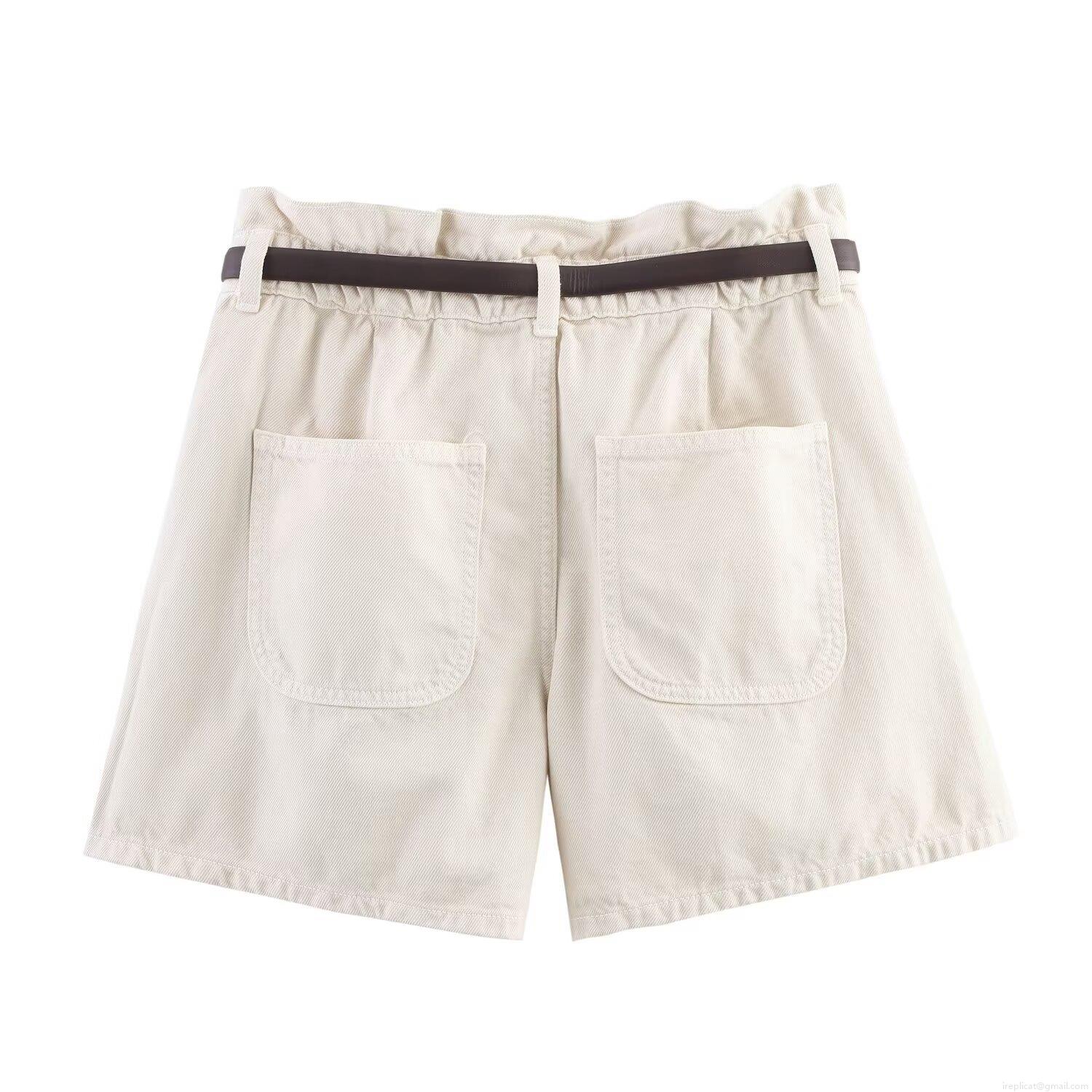 • Women's High Waist Paperbag Denim Shorts Casual Wide Leg Hot Pants With Belt Cotton Blend Summer Shorts For Ladies