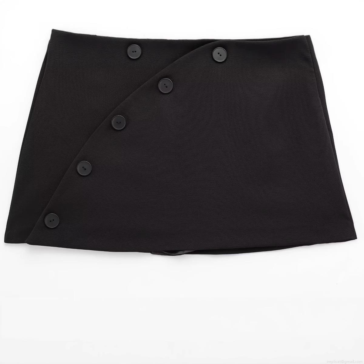 • Women's High Waist Skort With Side Oblique Button Decor Solid Black A-Line Mini Shorts Skirt Polyester Ice Hemp Woven Skort For Summer Dating Commuting Party Fashionable Casual Shorts