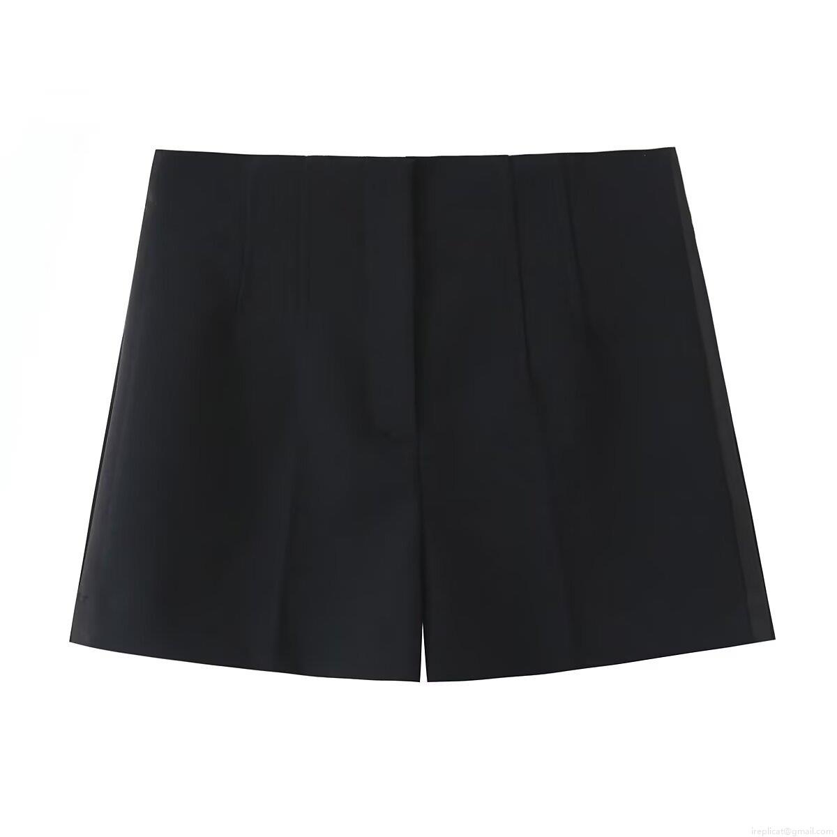 • Women's High Waist Suit Fabric Shorts Elegant Solid Black Wide Leg Pleated Casual Versatile Shorts for Office Daily Wear Autumn Winter