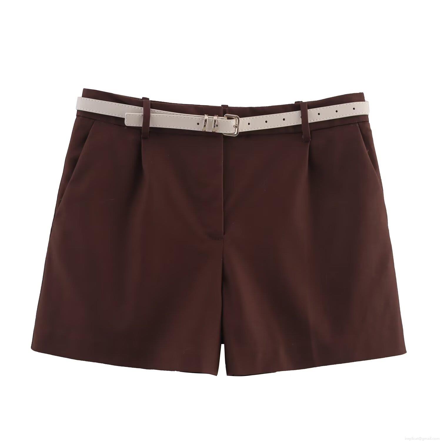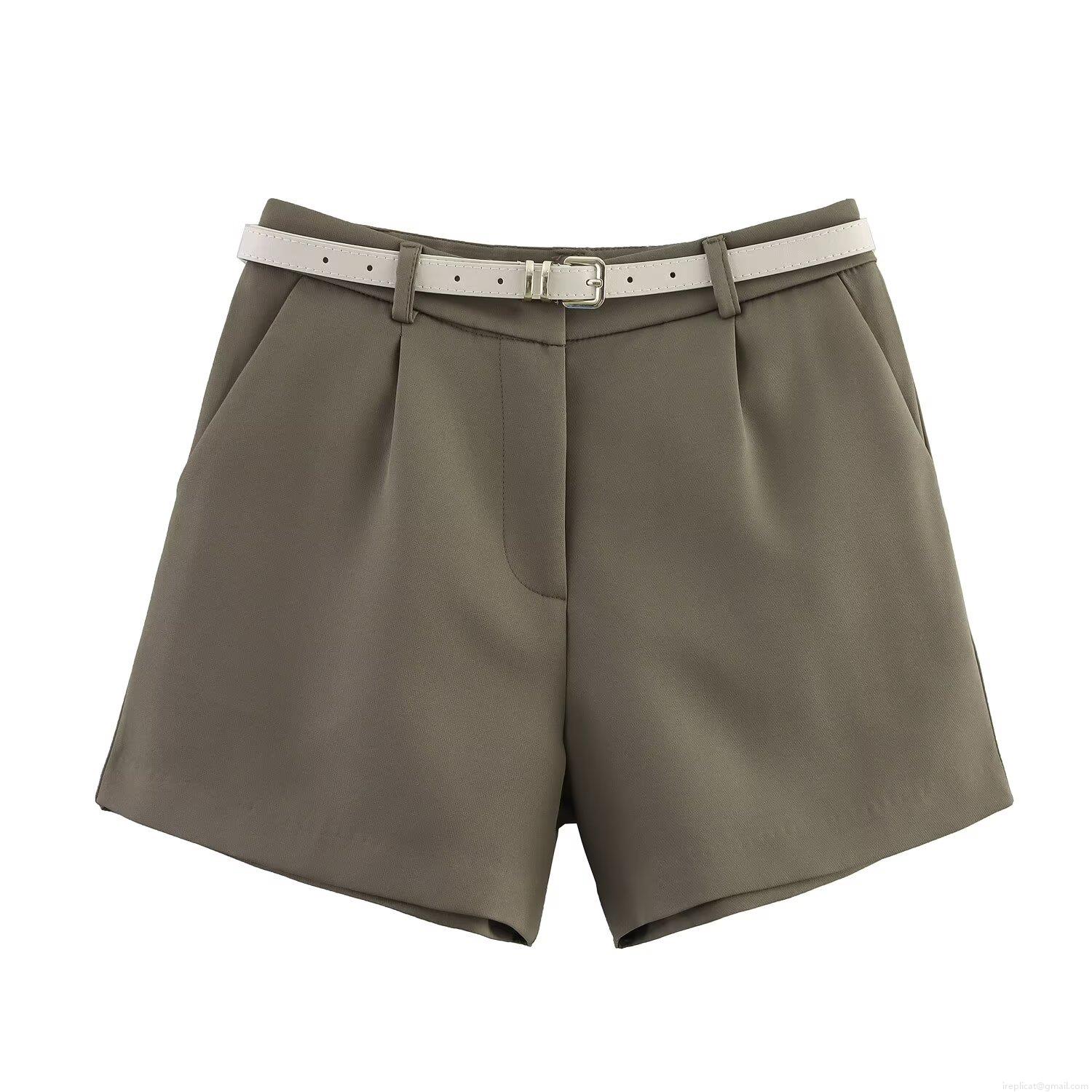 Women's High Waist Suit Shorts With Belt Polyester Ice Hemp Fabric Breathable Summer Casual Office Lady Solid Color Mini Short Pants Elegant Basic Bottoms