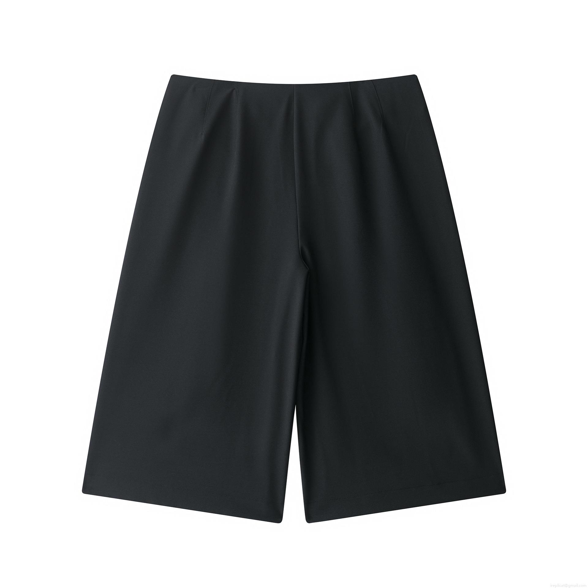 • Women's High Waist Wide Leg Shorts 100% Polyester Breathable Casual Loose Culottes For Summer Beach Office Modern Minimalist Women's Apparel With Pockets