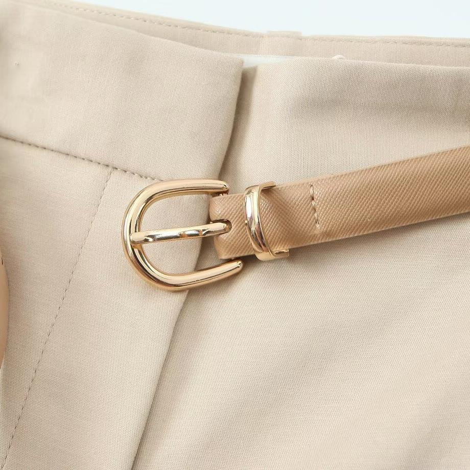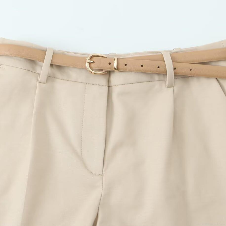 • Women's High Waist Wide Leg Shorts With Belt Pleated Casual Suit Fabric Polyester Spandex Fashion Shorts For Women Autumn Summer Office Lady