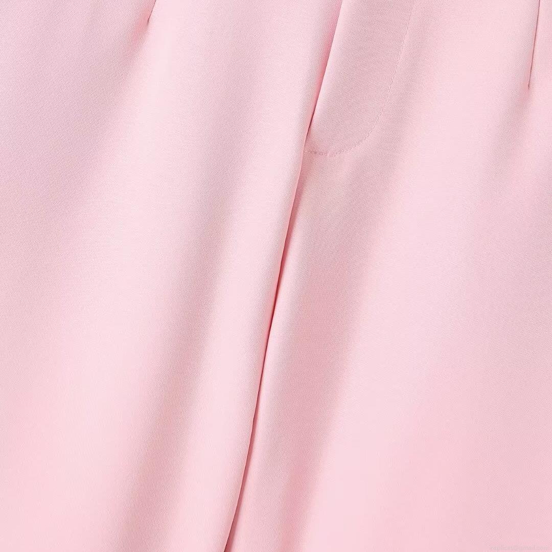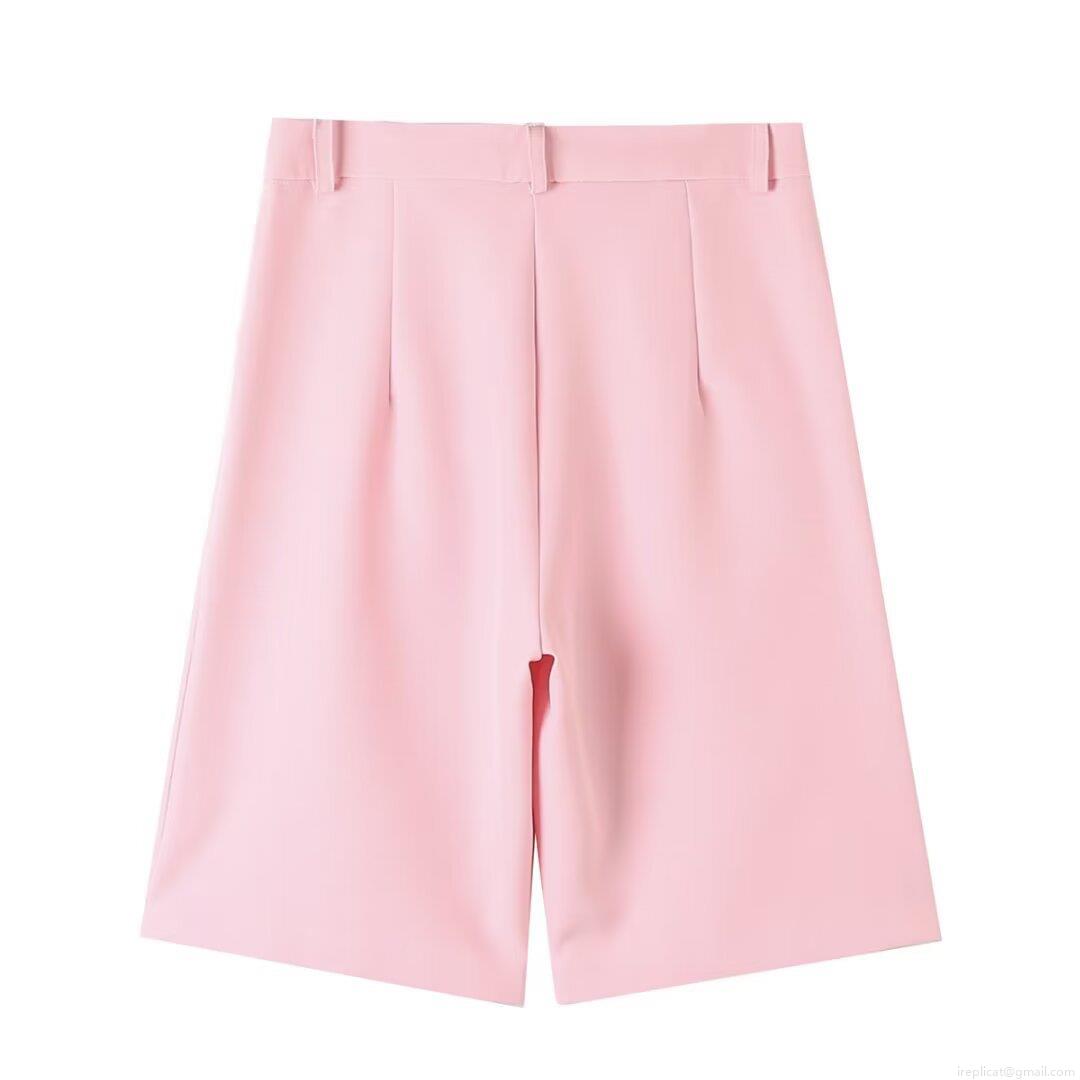Solid Color, Pocket, Single-breasted, Wide-leg, High-waisted, Five-point Length