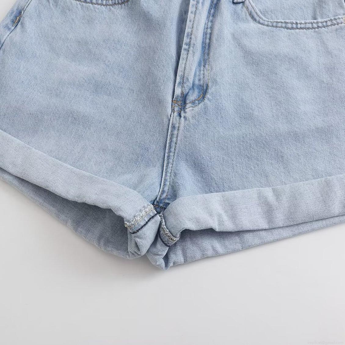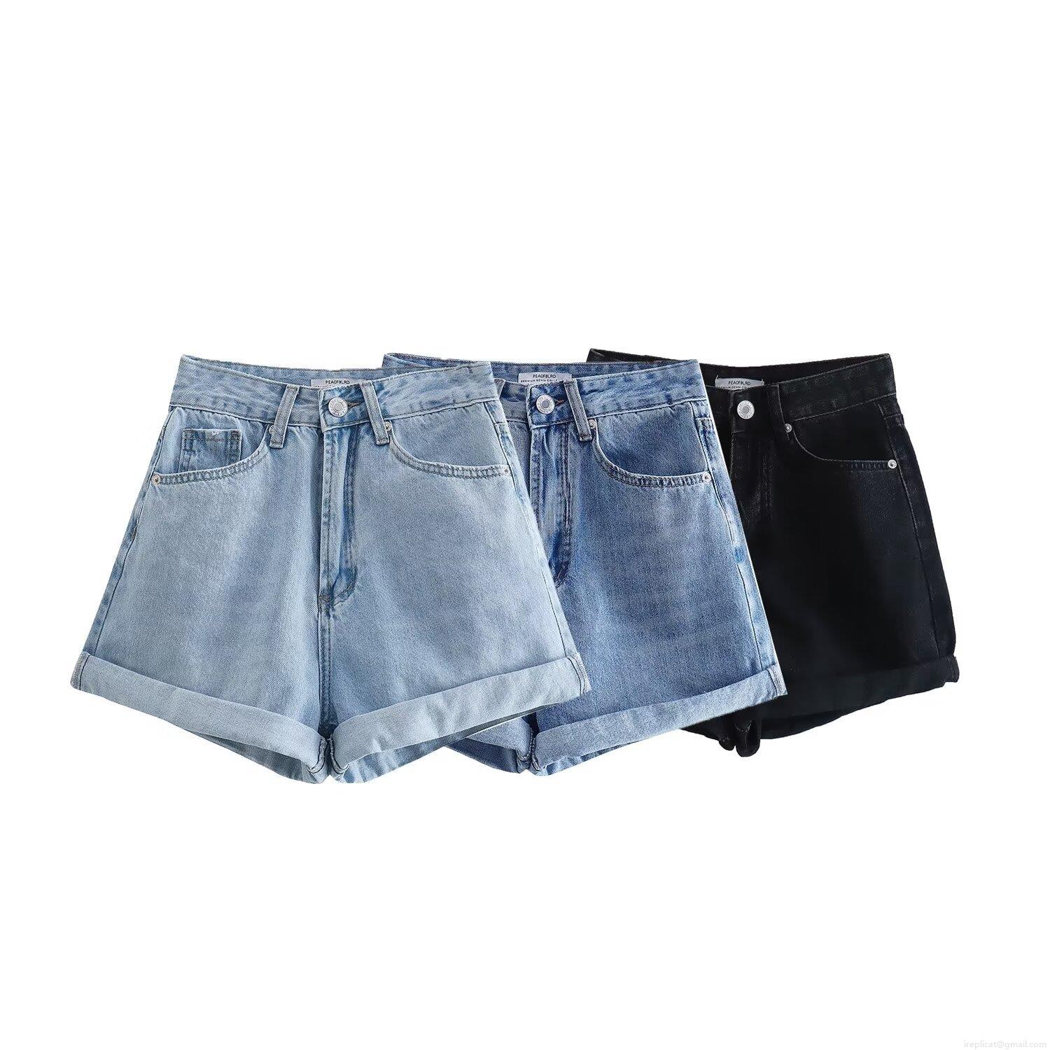• Women's High Waisted Cuffed Denim Shorts 100% Cotton Loose Fit Straight Leg Jeans Shorts For Summer Casual Fashion Ladies