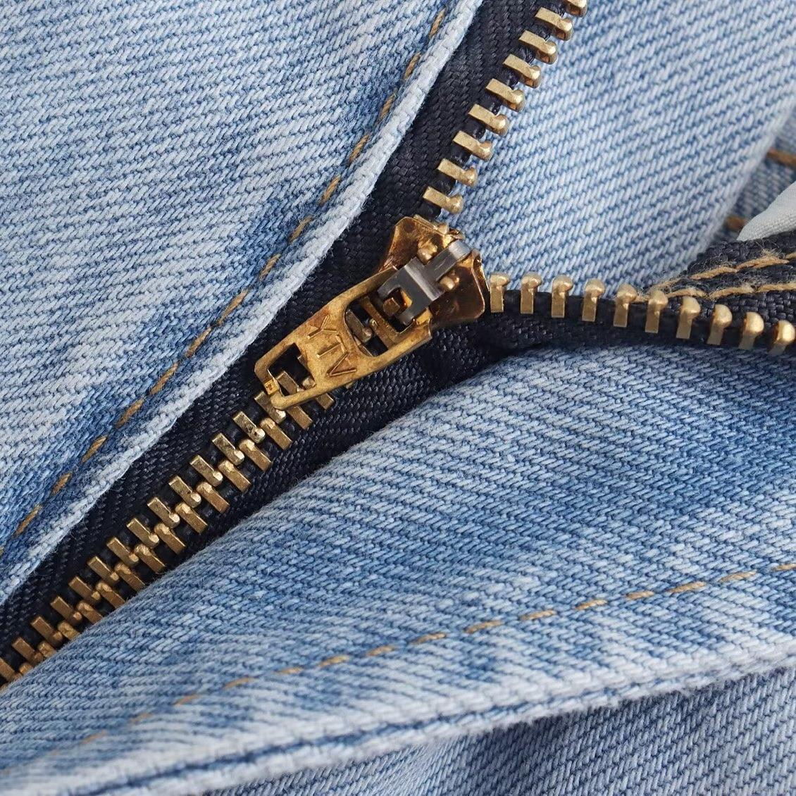 Solid Color, Crimping, High-waisted, Five Pockets