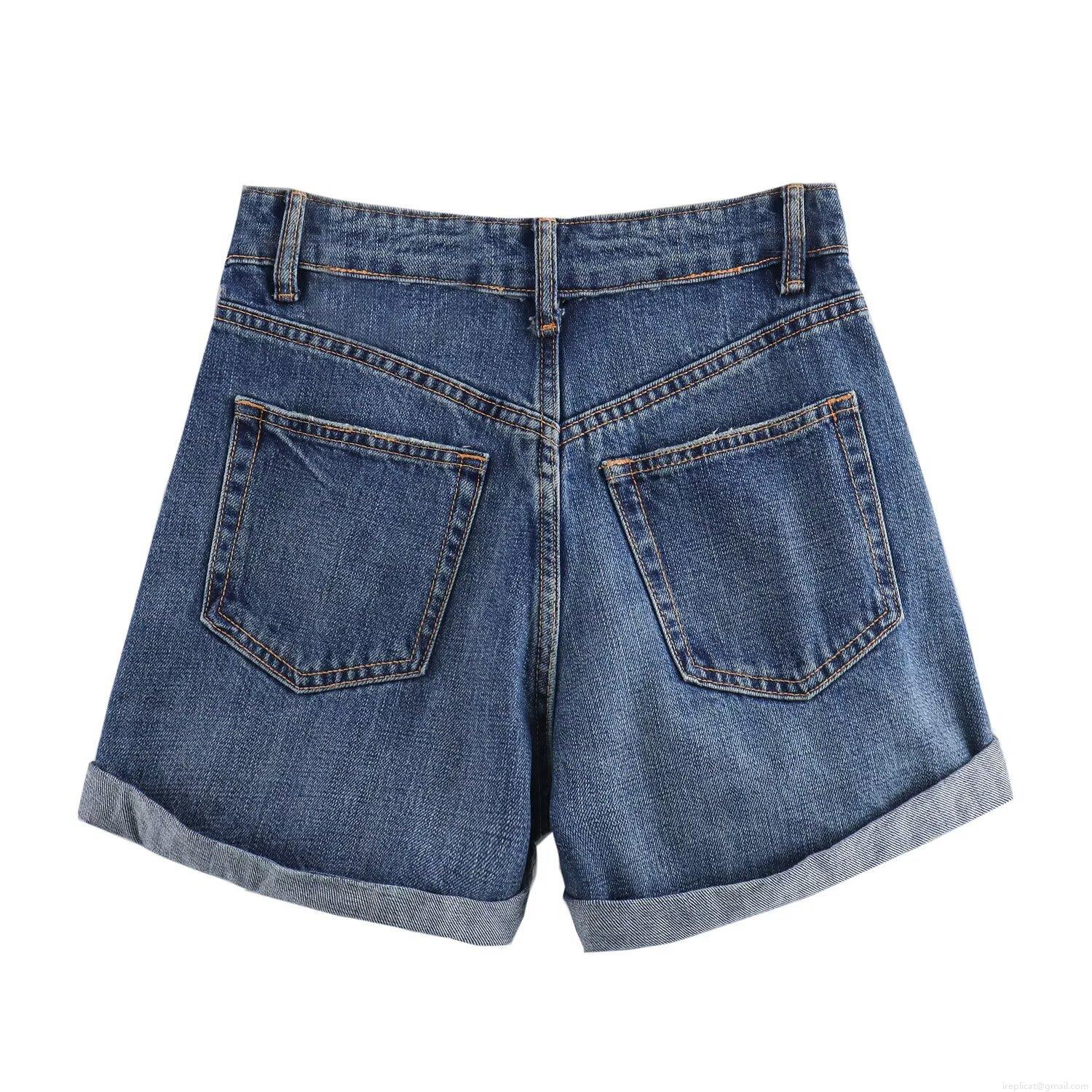 • Women's High Waisted Denim Shorts Summer Casual Loose Straight Leg Rolled Hem Solid Cotton Blend Washed Hot Pants For Ladies Fashion Streetwear