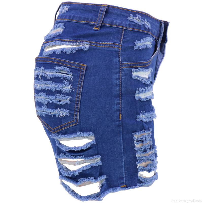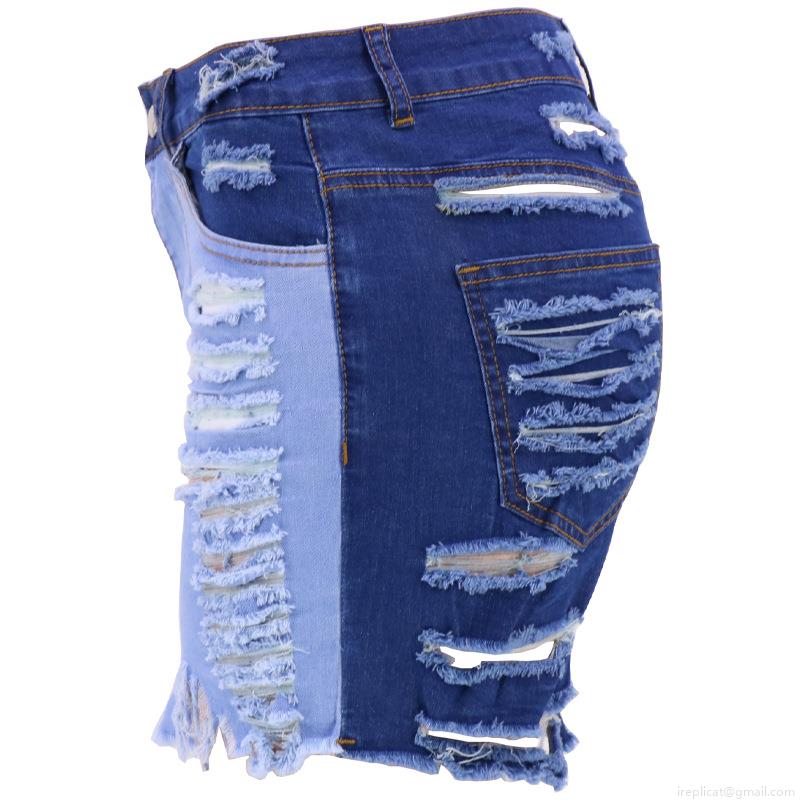 • Women's High Waisted Ripped Denim Shorts Color Block Patchwork Distressed Frayed Hem Hot Pants High Stretchy Cotton Blend Summer Streetwear Casual Shorts