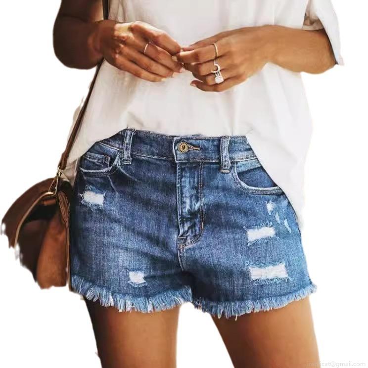 • Women's High Waisted Ripped Denim Shorts Distressed Frayed Hem Cotton Blend Jean Hot Pants For Summer Casual Streetwear A-Line Slimming Shorts
