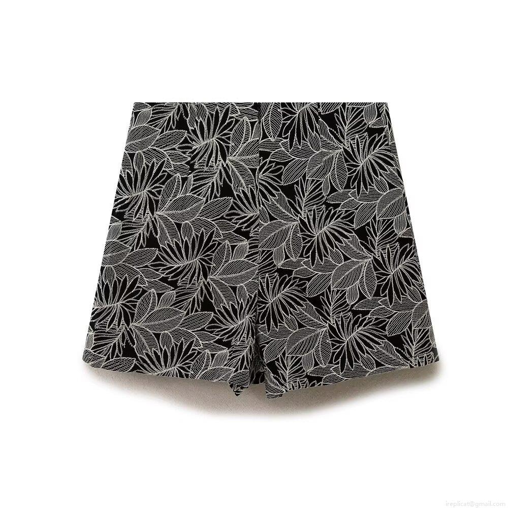 Women's High Waisted Skort Tropical Leaf Embroidery Cotton Blend A-Line Shorts Casual Chic Summer Vacation Skirt Pants For Women