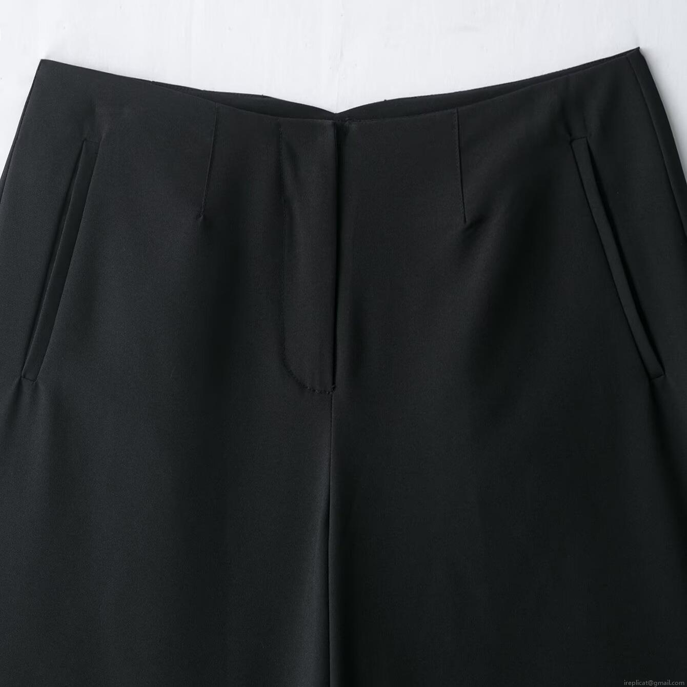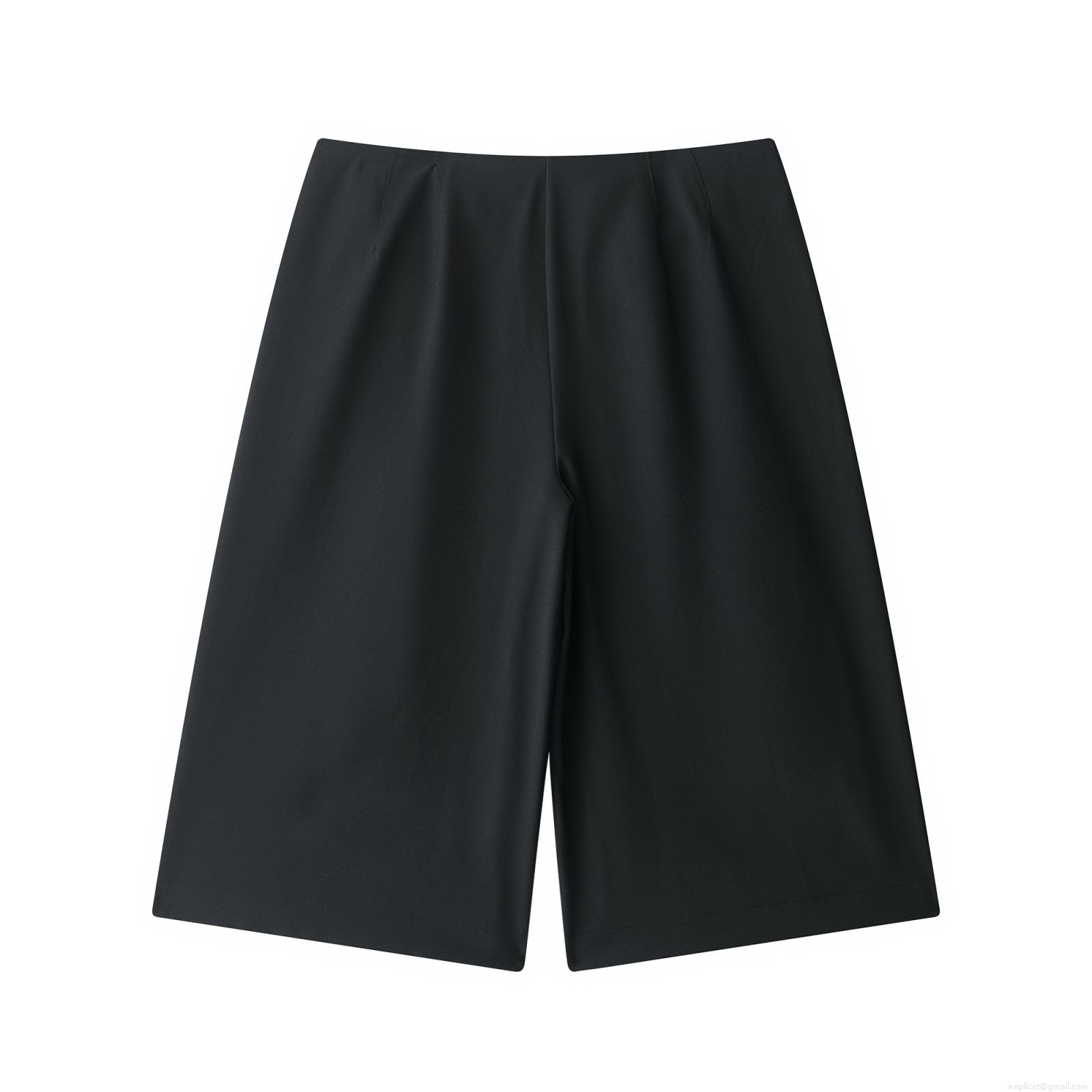 • Women's High Waisted Wide Leg Polyester Bermuda Shorts Solid Black Office Wear Suit Style Knee Length Straight Leg Casual Summer Trousers For Women