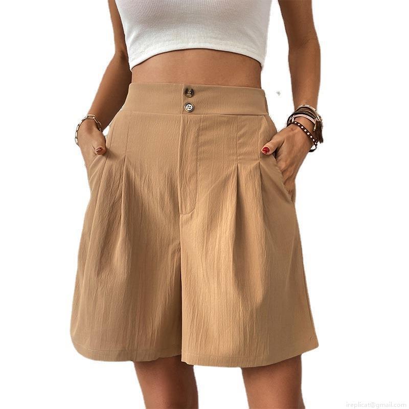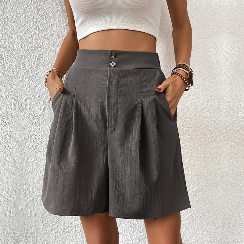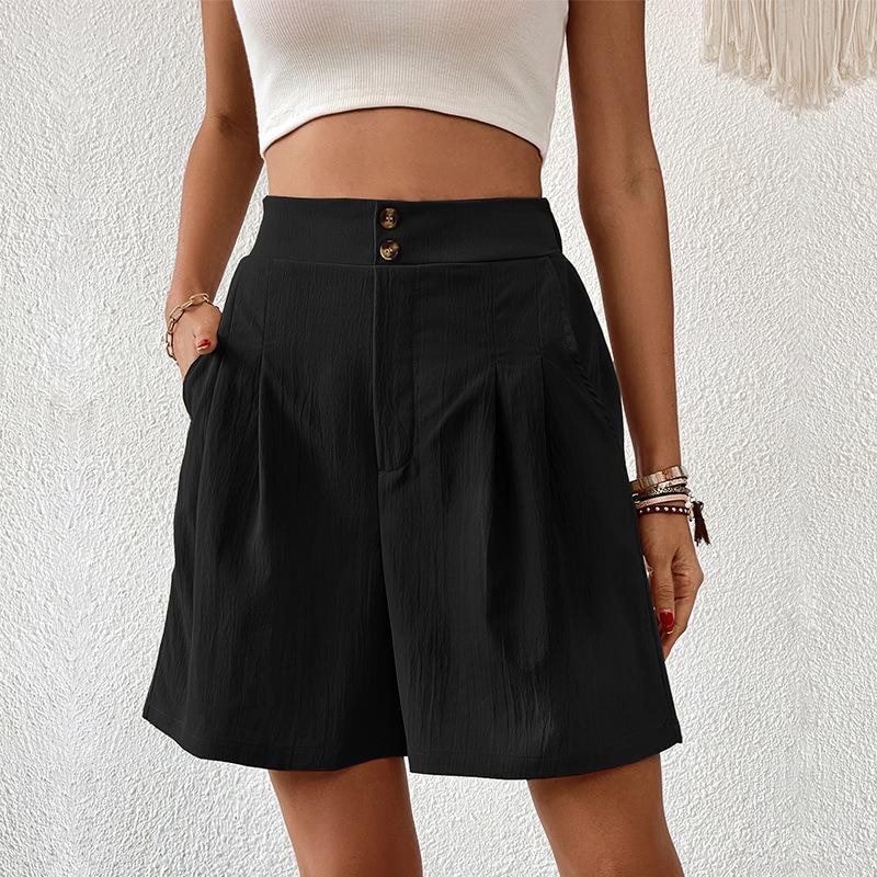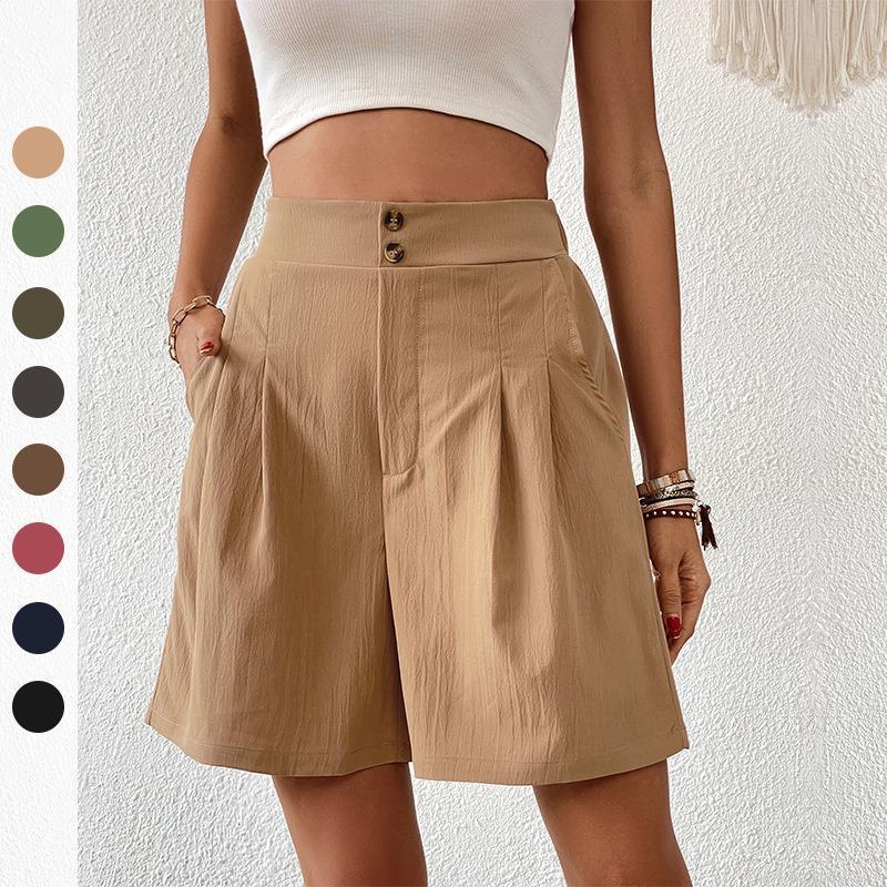 • Women's High Waisted Wide Leg Shorts Linen Texture Double Button Pleated Loose Summer Casual Office Work Shorts with Pockets