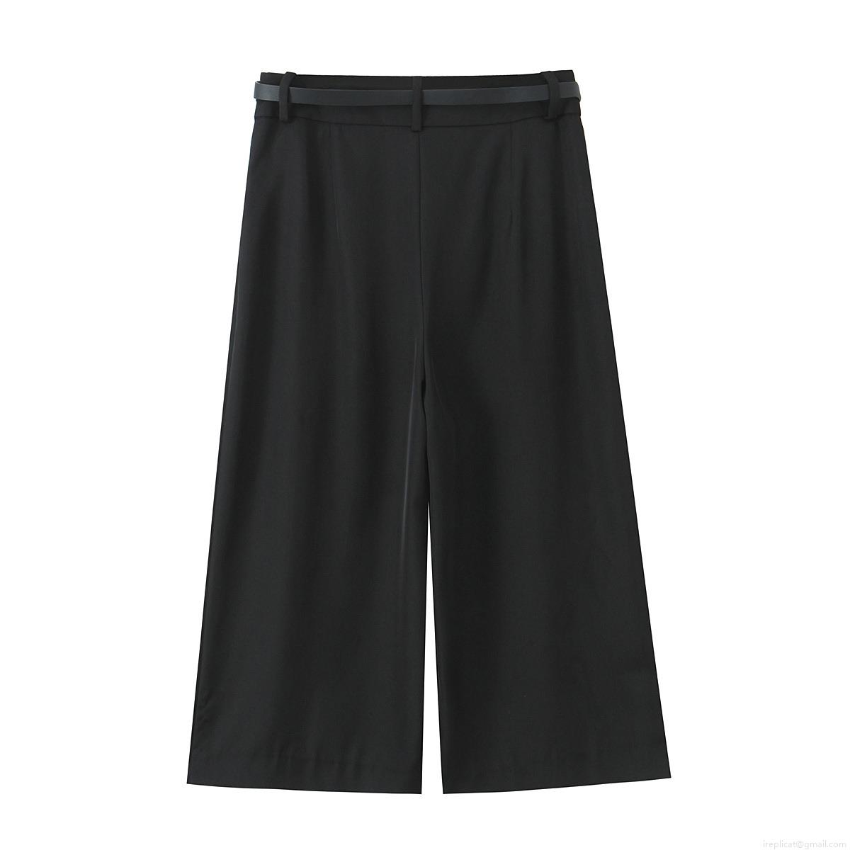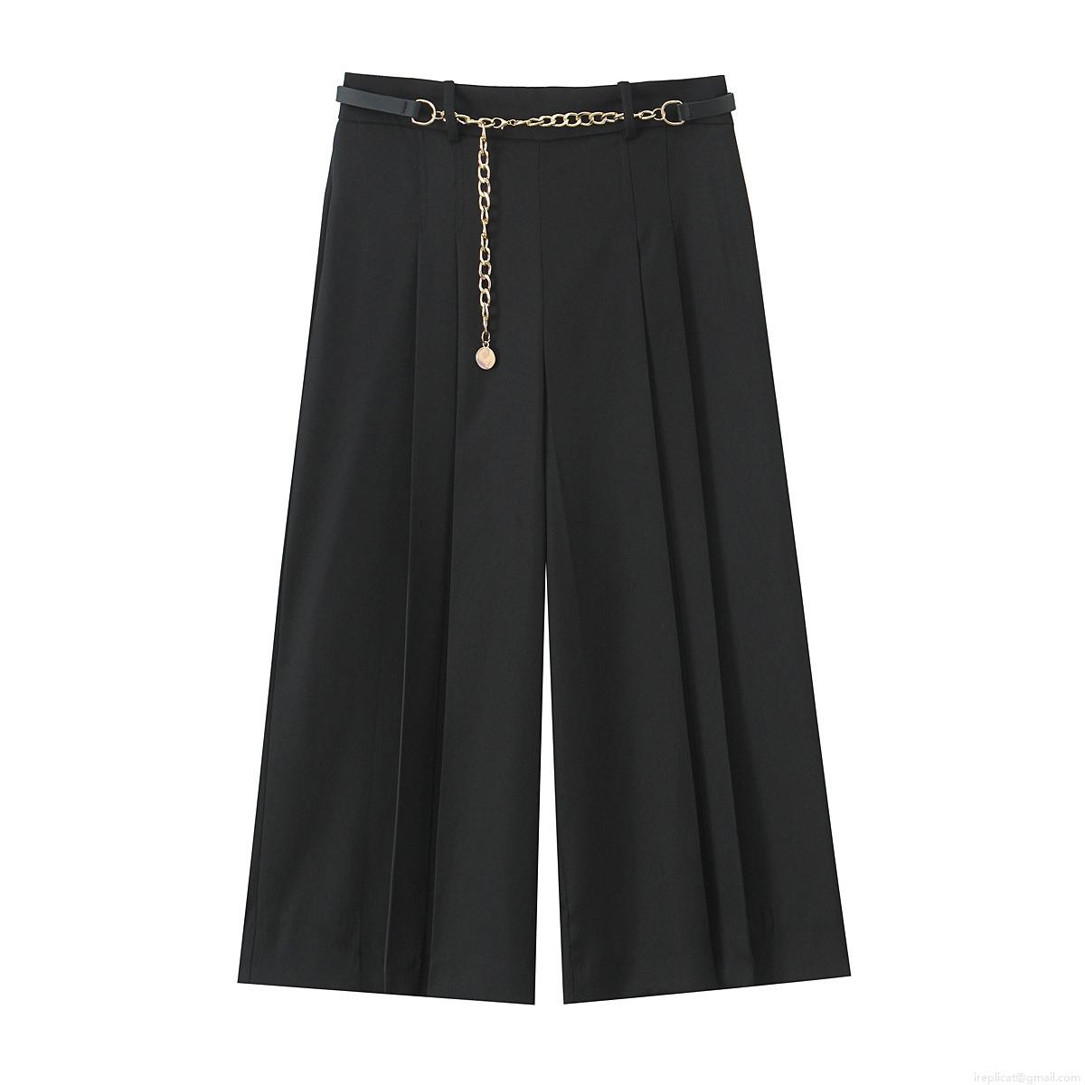 Solid Color, Belt Decoration, Metal Chain Decoration, High-waisted Design, Wide-leg Cut