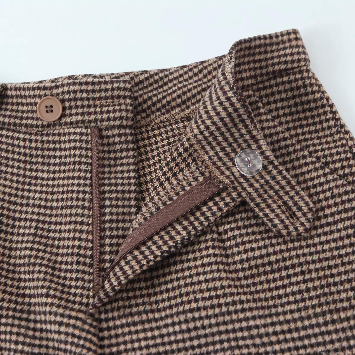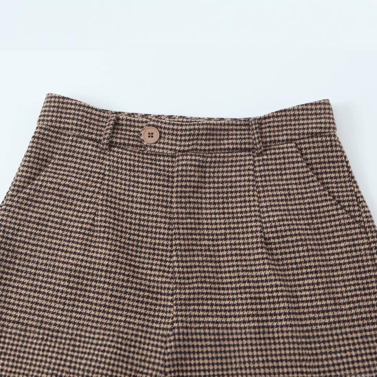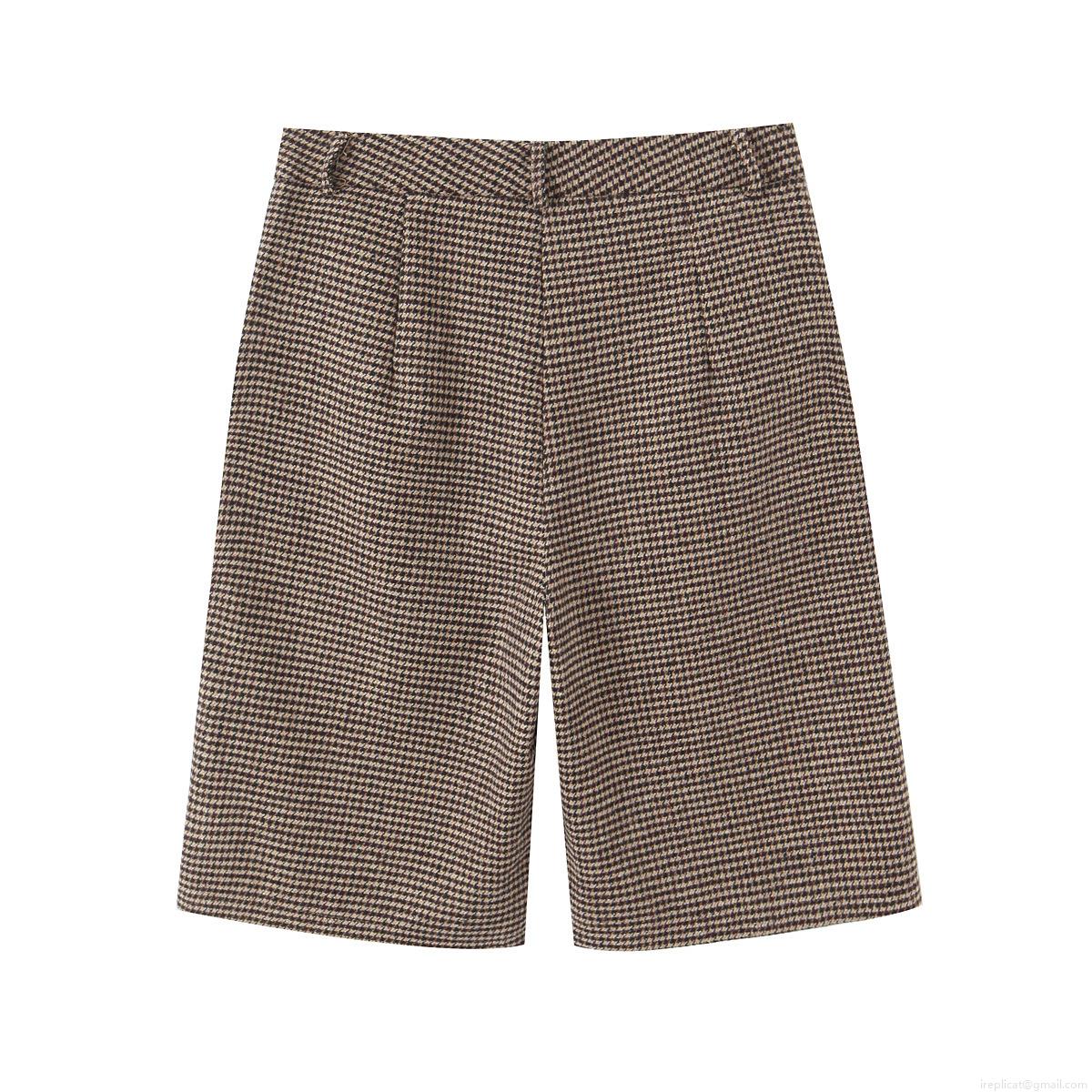 • Women's Houndstooth Bermuda Shorts Vintage Mid Waist Button Zip Fly Pockets Casual Street Daily Wear Polyester Blend Tweed Texture Short Pants