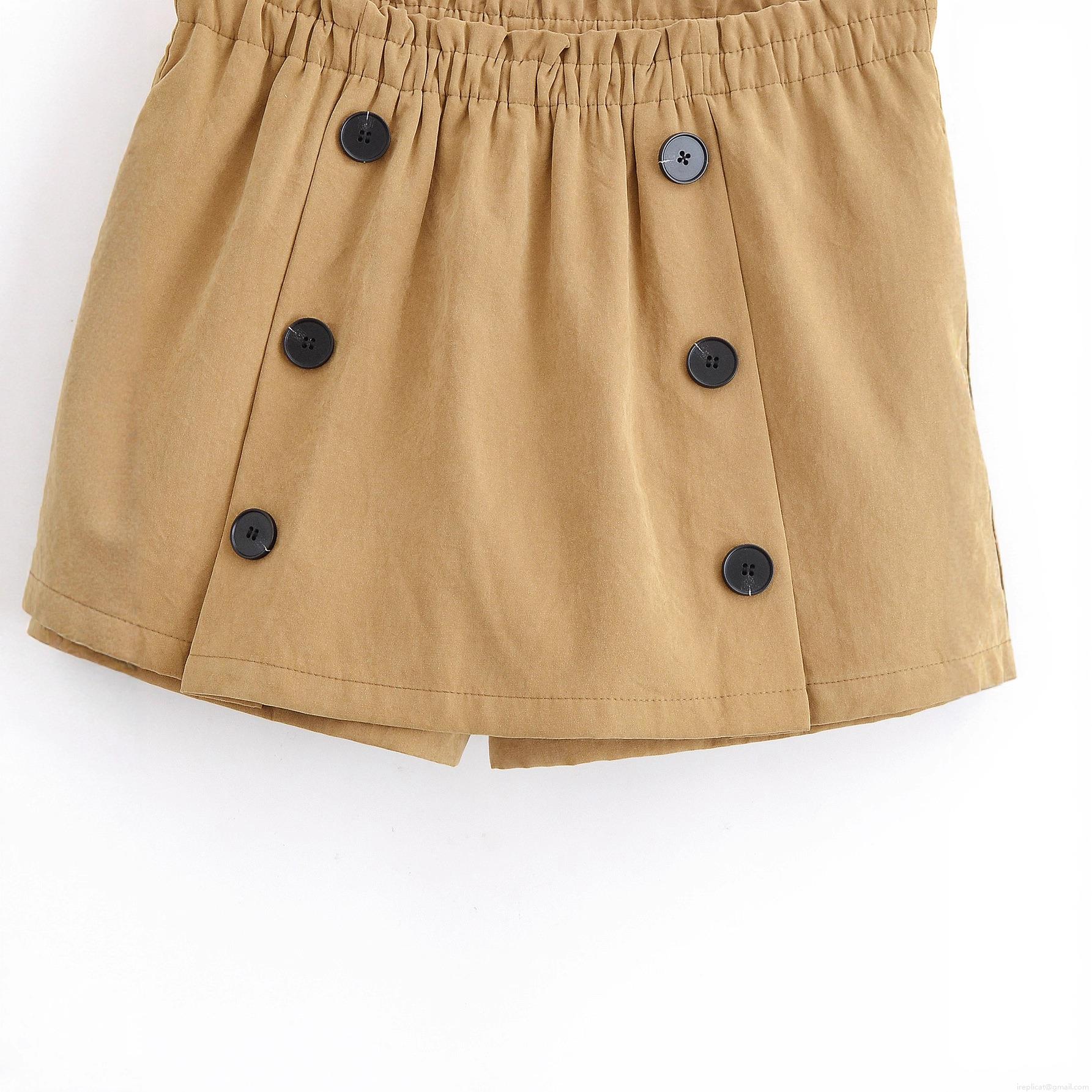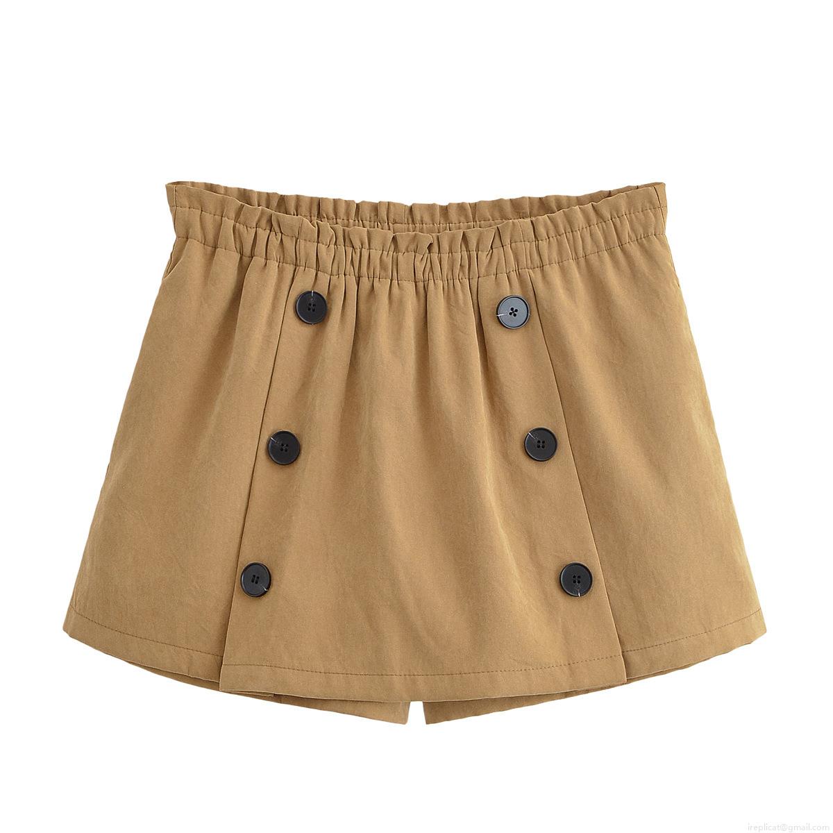 • Women's Khaki Fashion Skort Double Breasted Elastic High Waist Polyester Mini Shorts Skirt For Casual Streetwear Trendy Sexy Ladies Bottoms