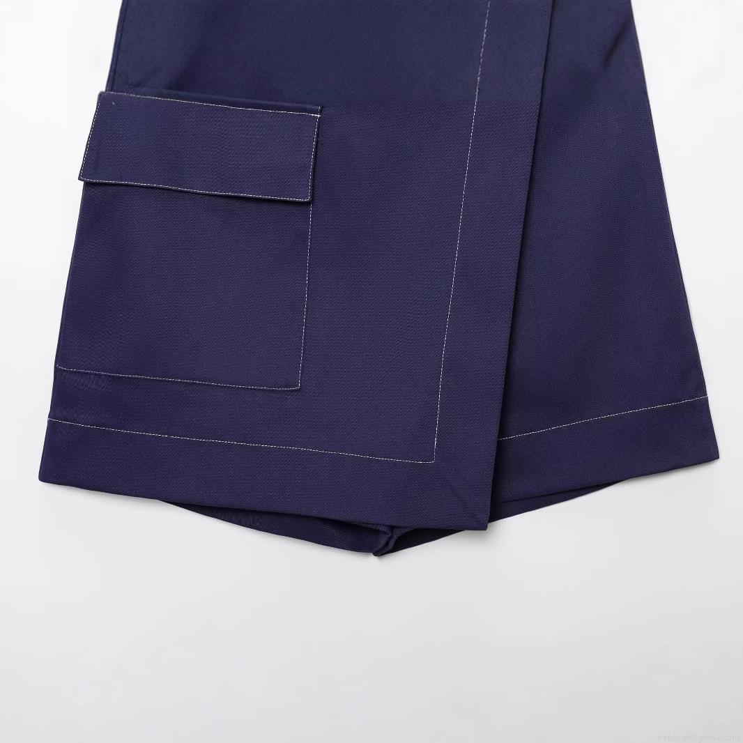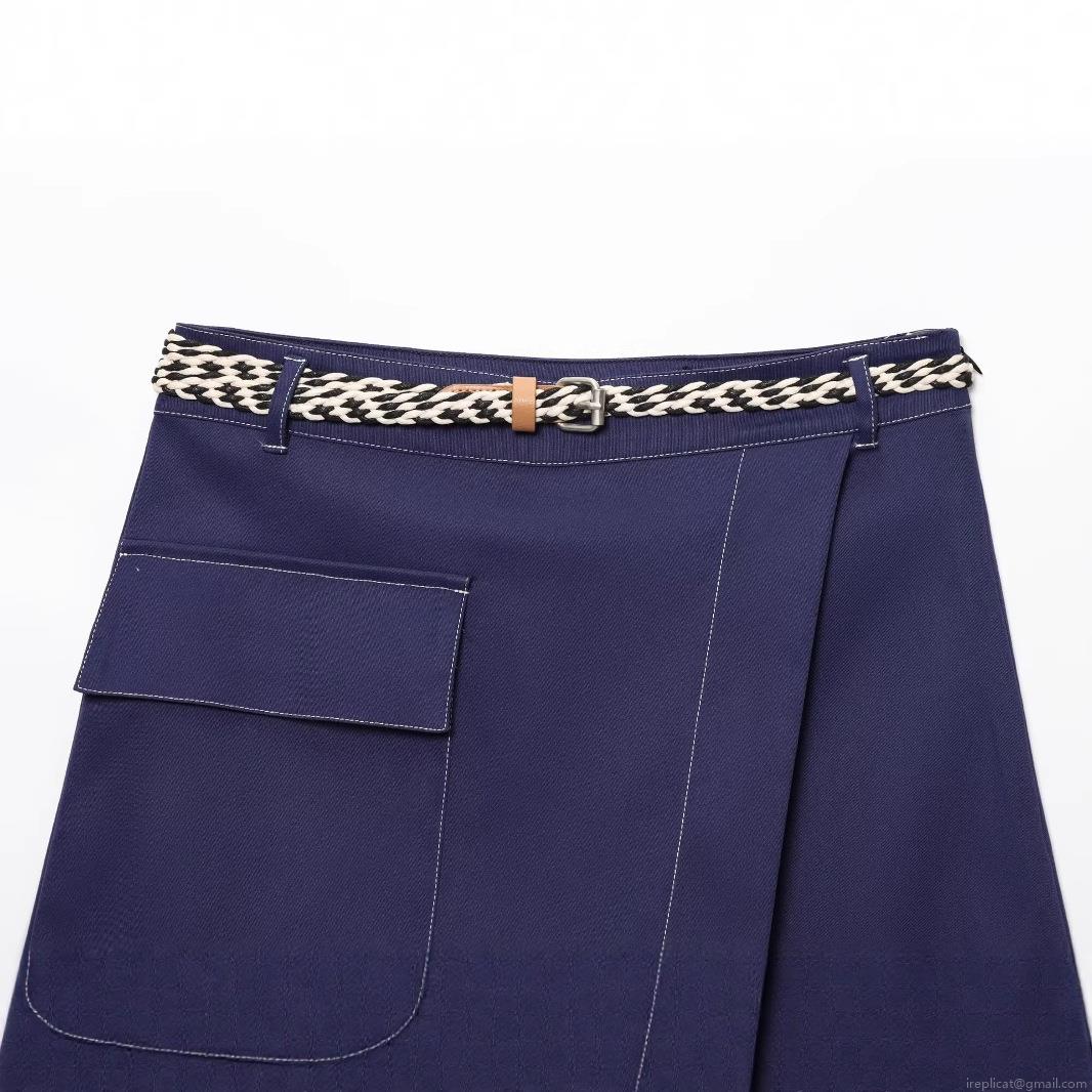 • Women's Navy Blue Polyester Skort With Braided Belt Contrast White Stitching High Waist Wrap Design Mini Skirt Shorts For Casual Summer Fashion Lady Clothes
