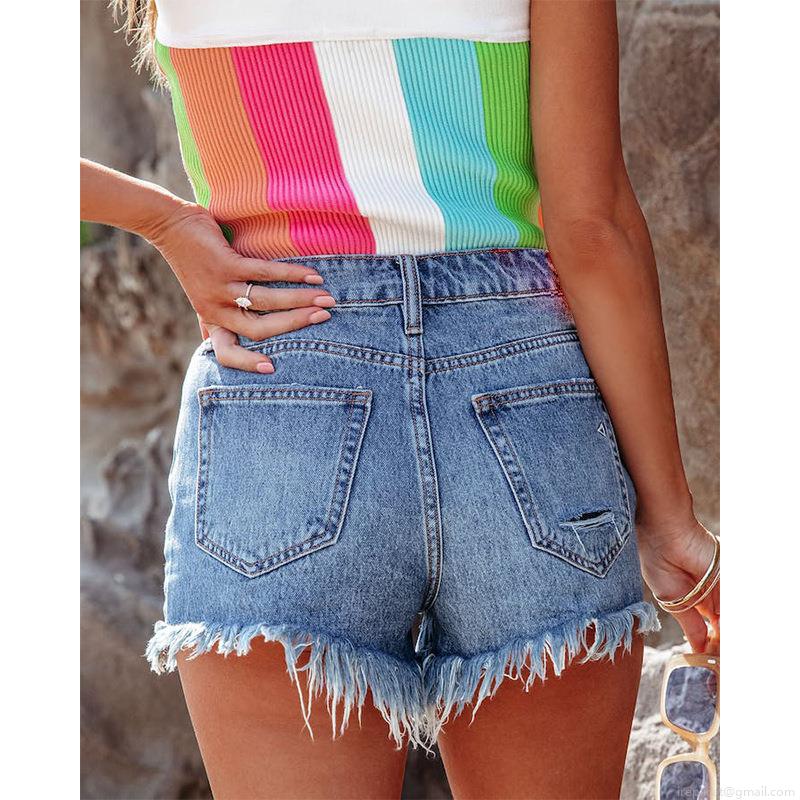 Women's Ripped Denim Shorts Distressed Frayed Hem Tassel Cotton Jean Shorts Mid Waist Summer Beach Hot Pants Streetwear Casual Short Denim Trousers