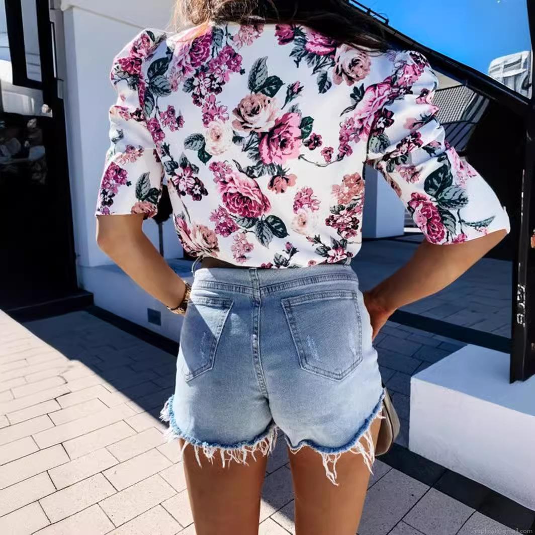 • Women's Ripped Denim Shorts Distressed Raw Hem High Waisted Cotton Blend Stretchy Washed Jean Hot Pants For Summer Streetwear Ladies