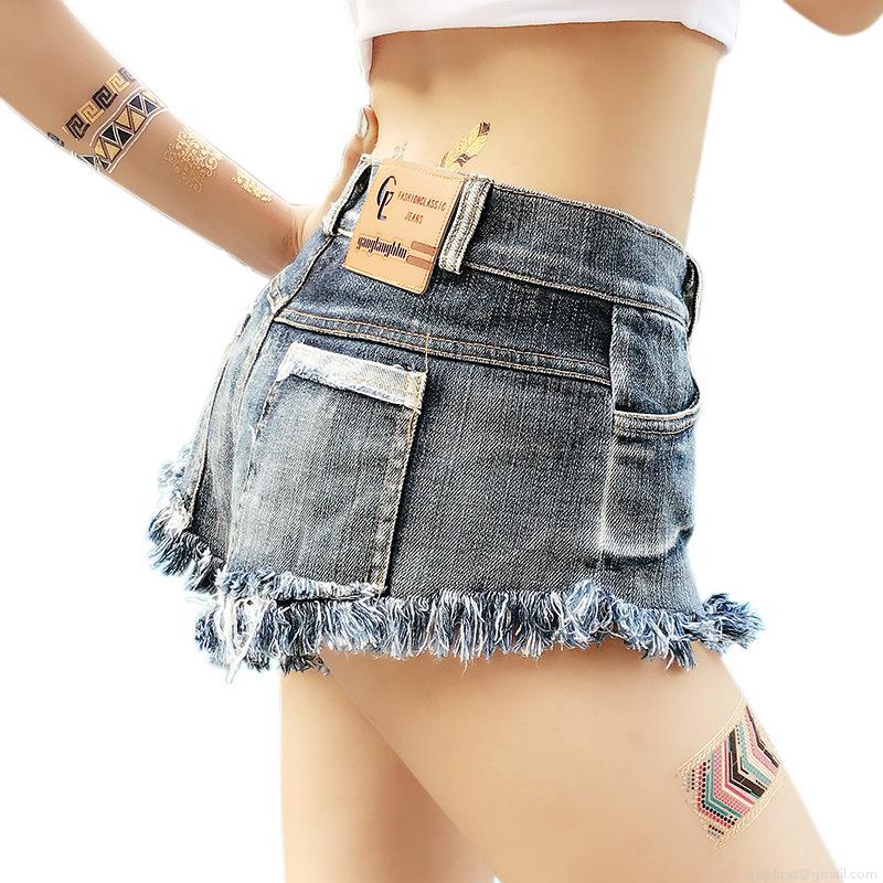 Women's Sexy Denim Hot Pants Super Short Frayed Raw Hem Jeans Summer Beach Clubwear High Waisted Polyester Cotton Washed Tassel Shorts