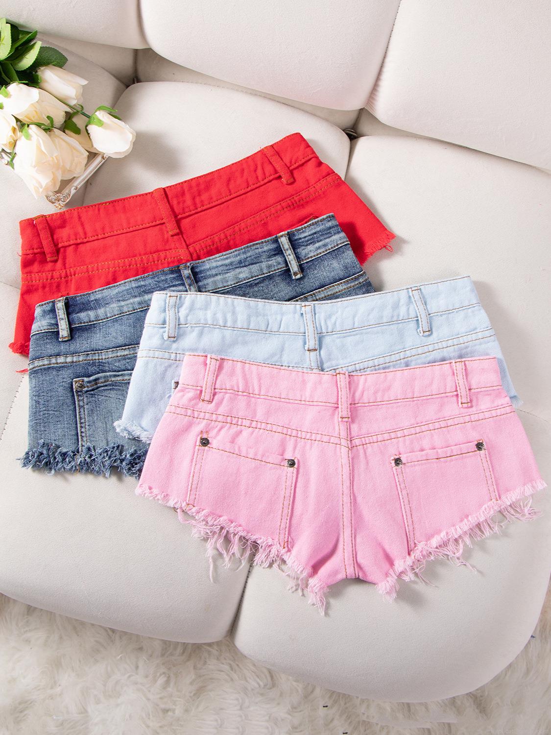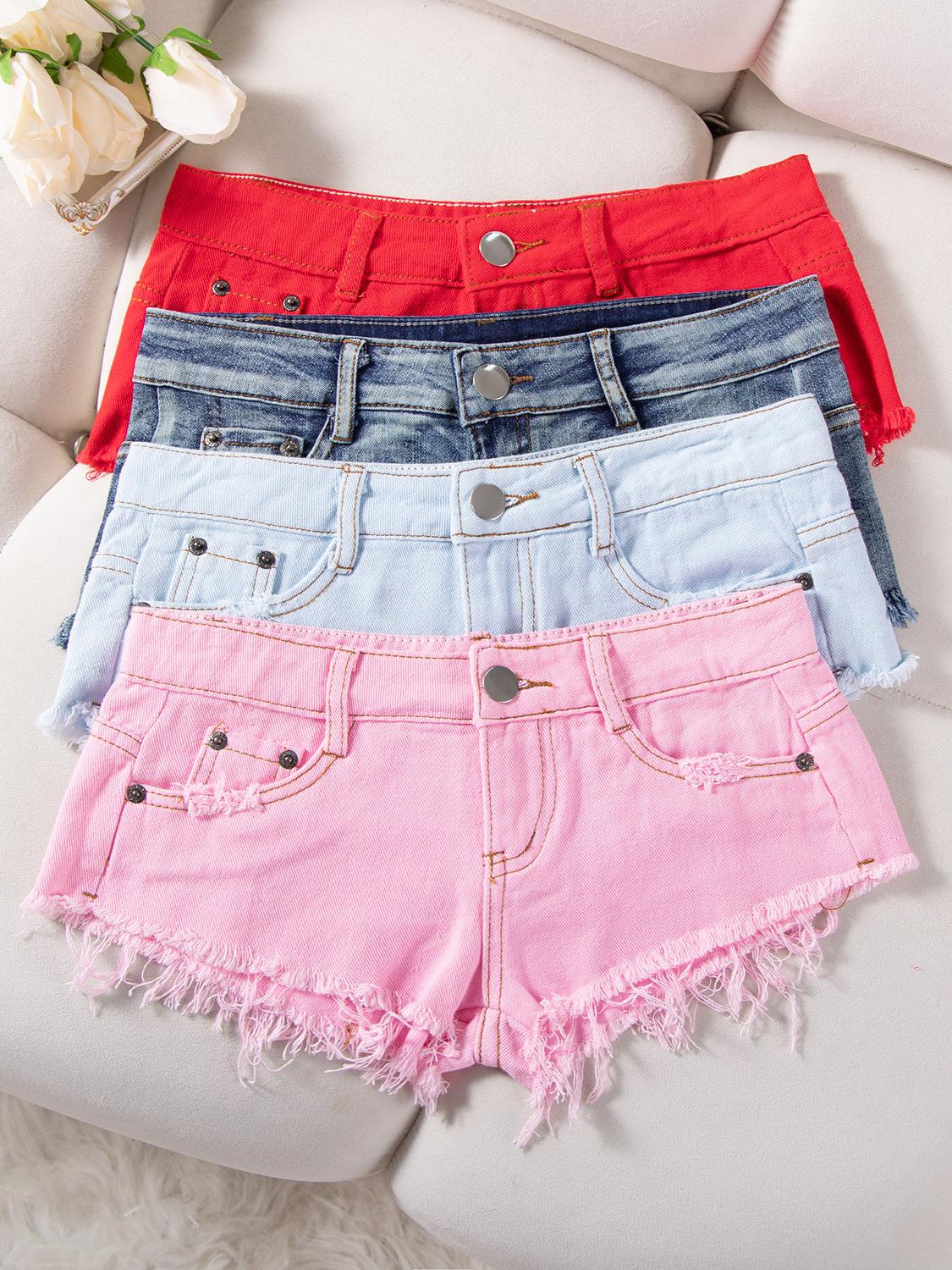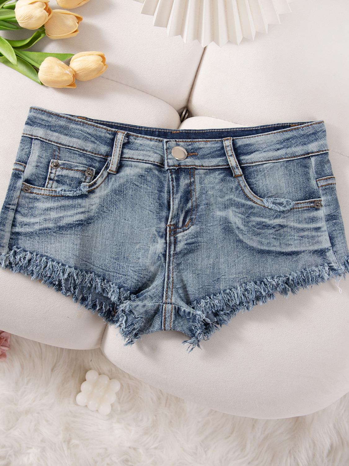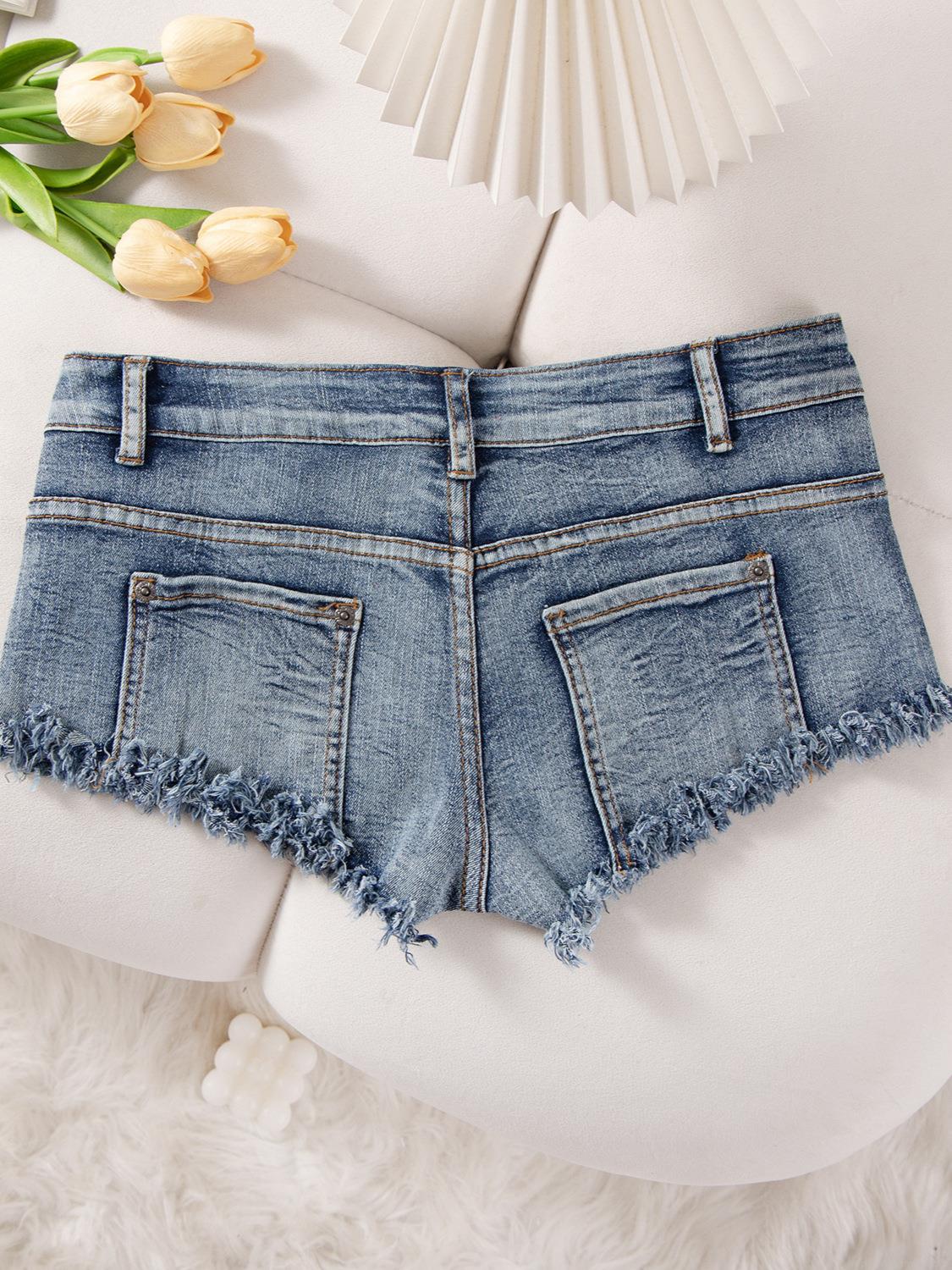 • Women's Sexy Distressed Denim Shorts Cotton Blend Fringed Hem Low Waist Ripped Hot Pants Summer Beach Street Party Club Wear Mini Jean Shorts