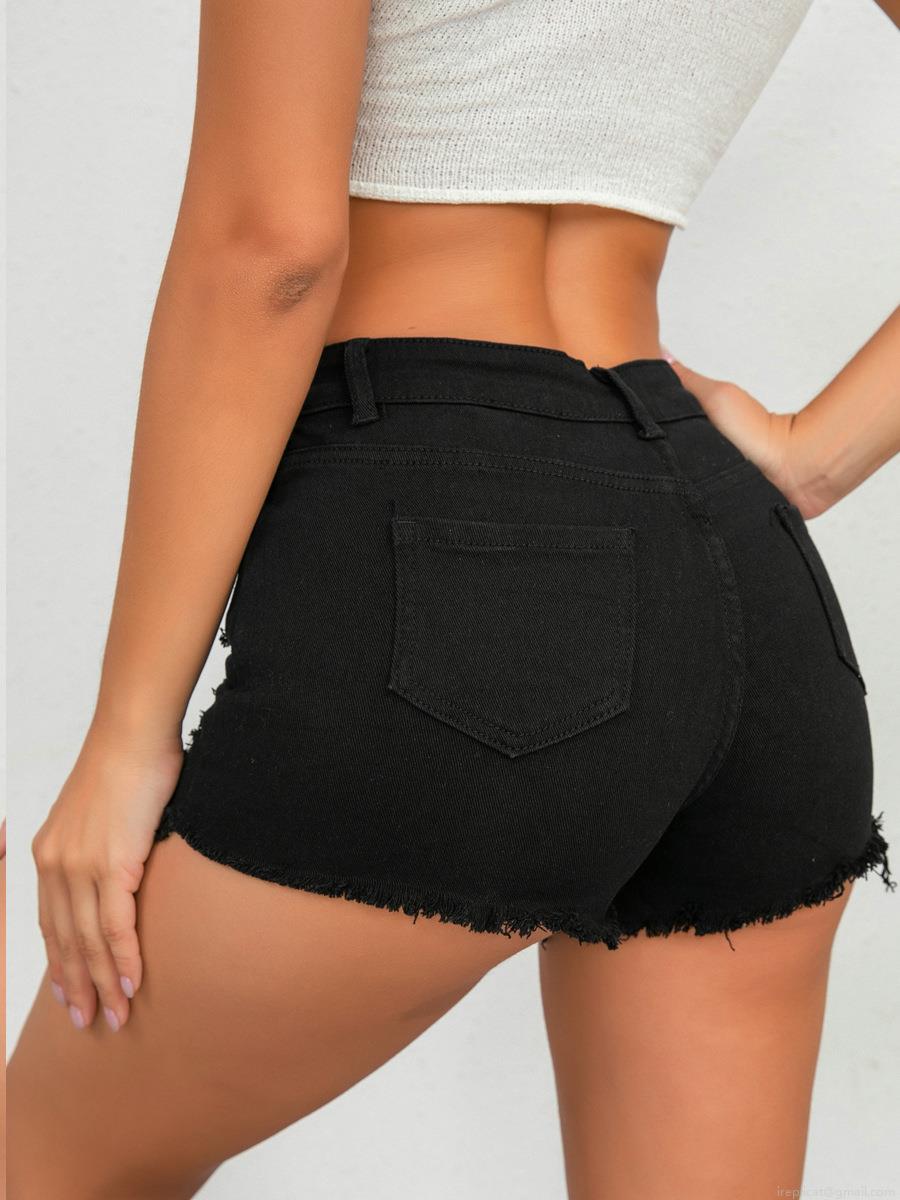 Solid Color, Rough Edges, Wear And Tear, High-waisted