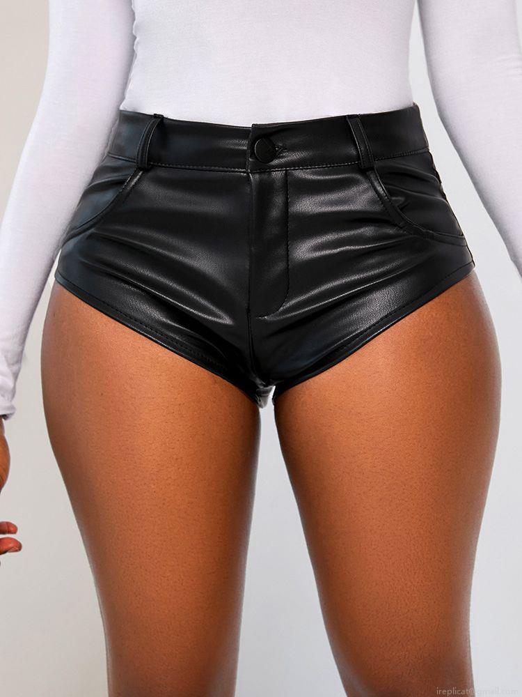 • Women's Sexy High Waist PU Faux Leather Shorts Stretch Tight Hot Pants Clubwear Night Out Black Slim Mini Shorts With Pockets
