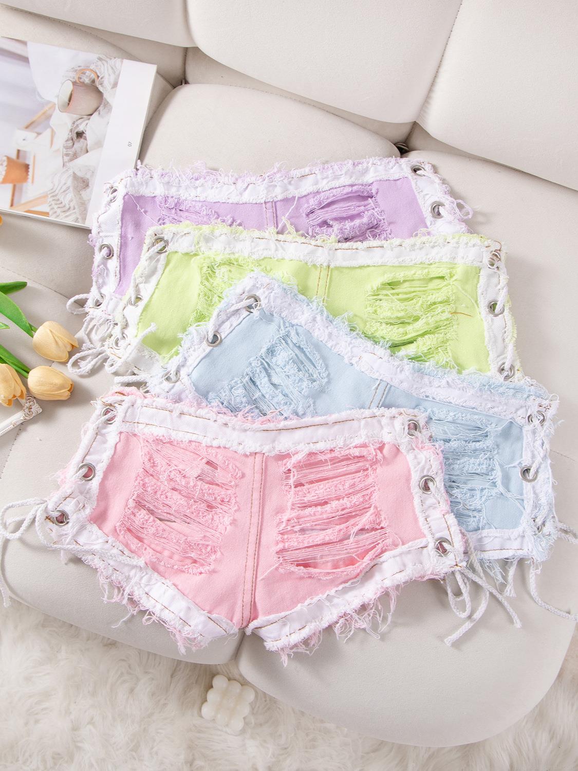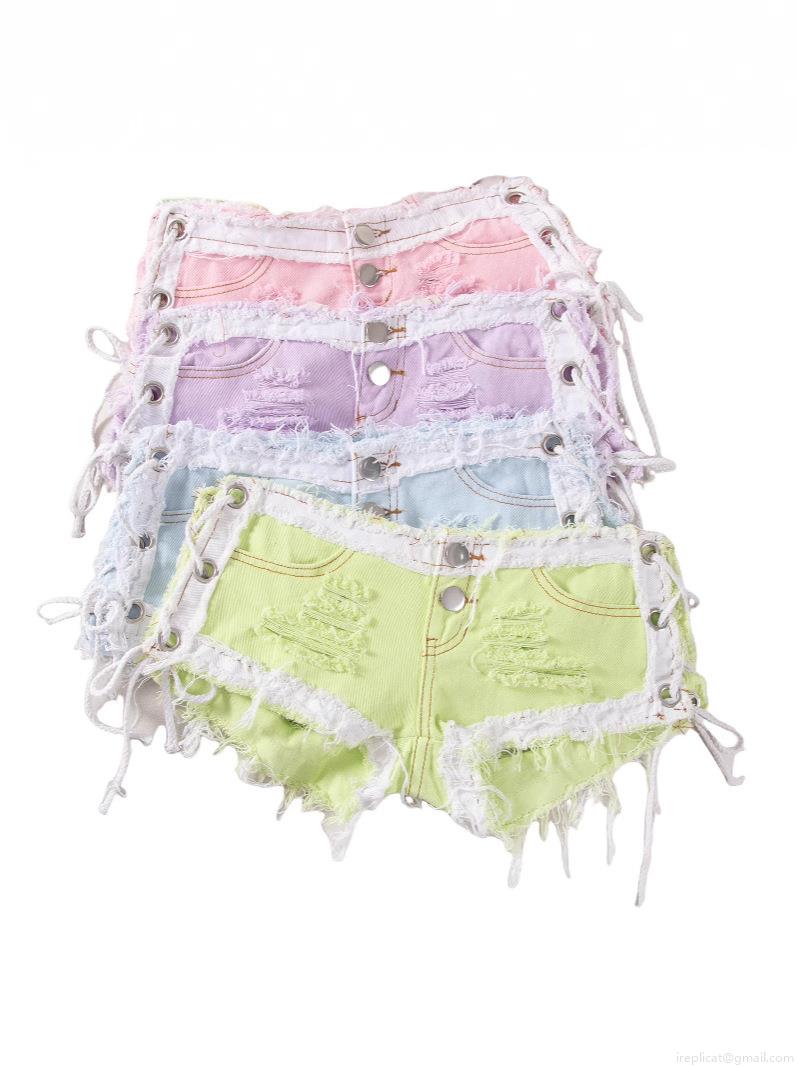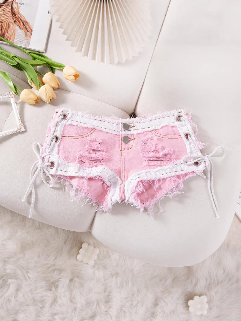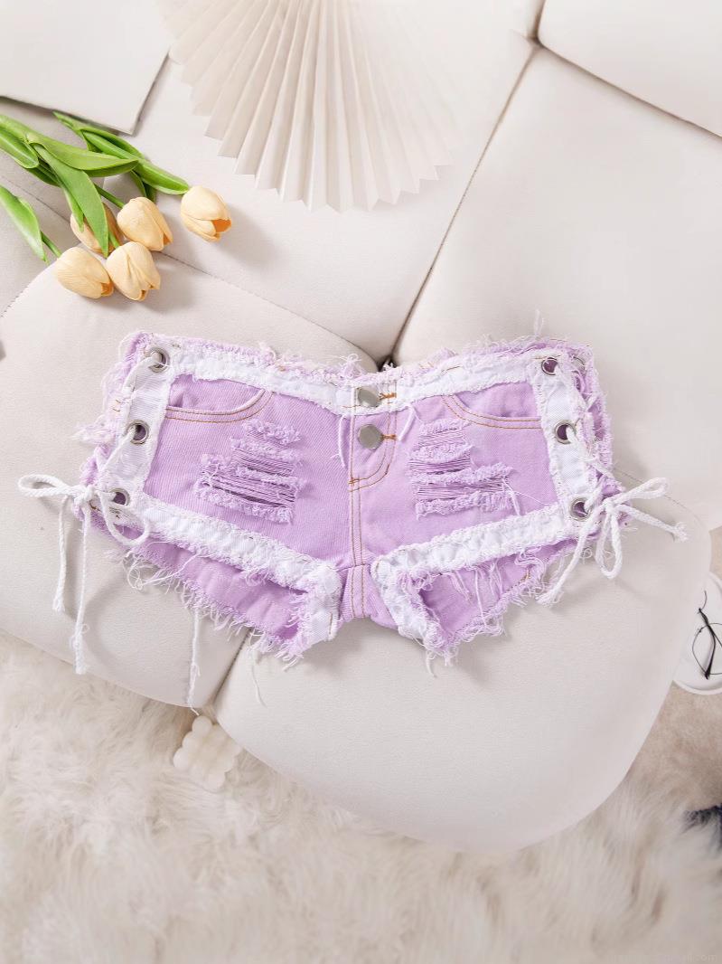 • Women's Sexy Low Waist Denim Shorts Side Lace Up Ripped Hole Tassel Hot Pants Summer Clubwear Nightclub Party Jeans For Women Sexy Denim Shorts