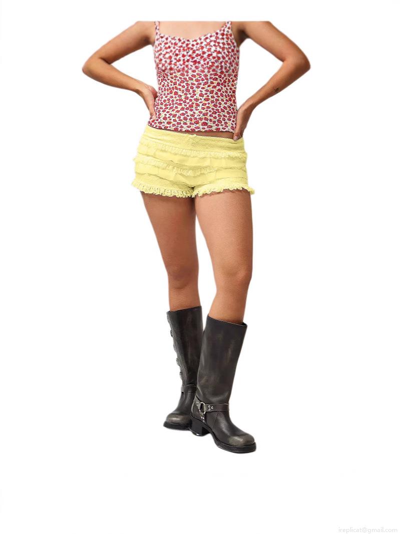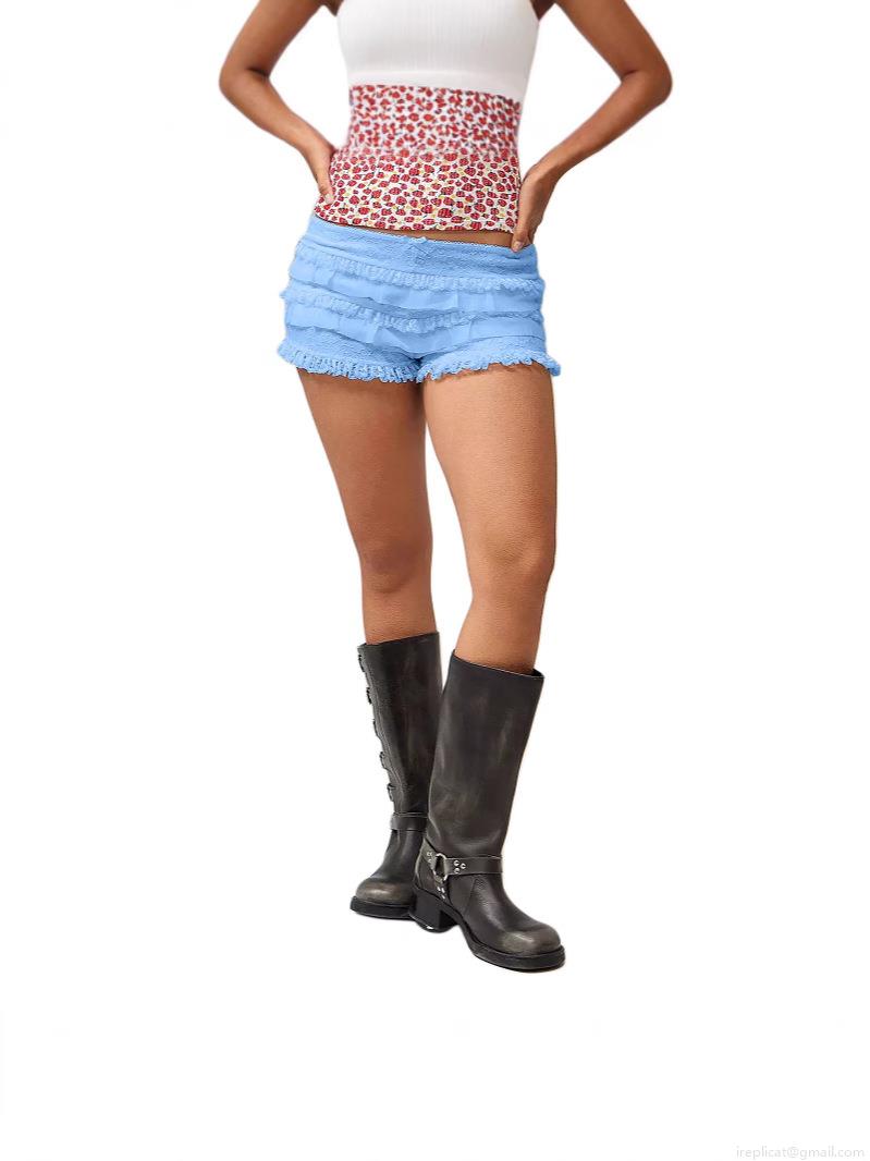• Women's Sexy Multi-Layered Lace Ruffle Shorts Culottes With Bow Design Stretchy Ruffled Hem Hot Pants For Clubwear Party Fashion Bottoms Short Pants