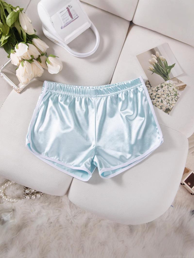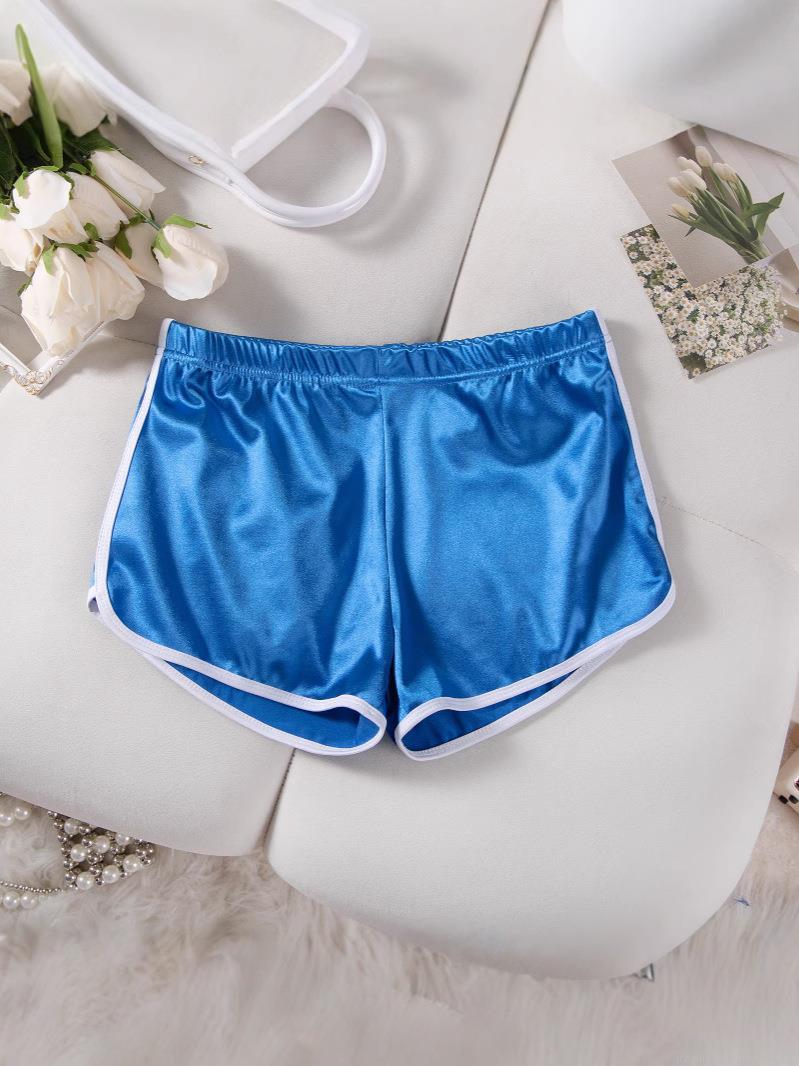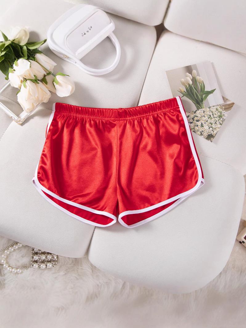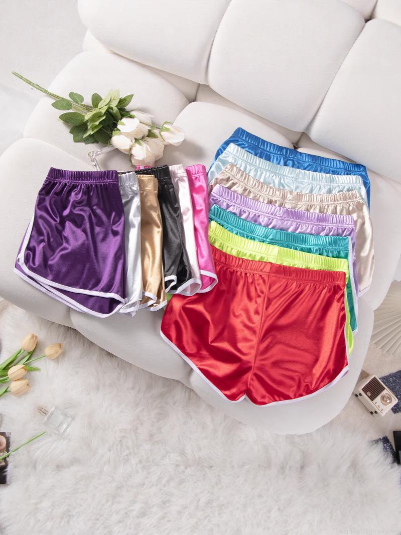 • Women's Sexy Satin Athletic Shorts Shiny Metallic Dolphin Shorts with White Piping High Waisted Gym Yoga Running Hot Pants Summer Activewear