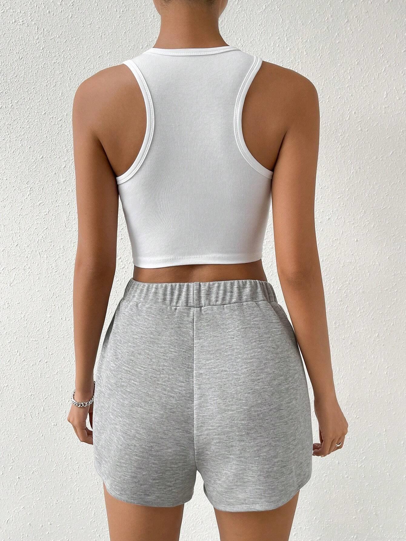 Women's Sporty Skort Cotton Polyester Blend Knitted Elastic High Waist Asymmetric Overlap Anti-exposure Athletic Casual Shorts For Tennis Yoga Daily Wear