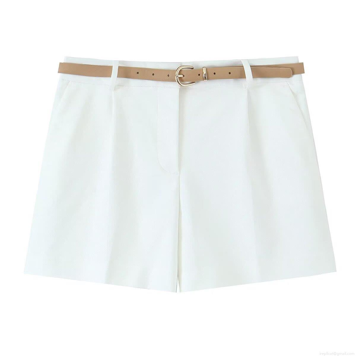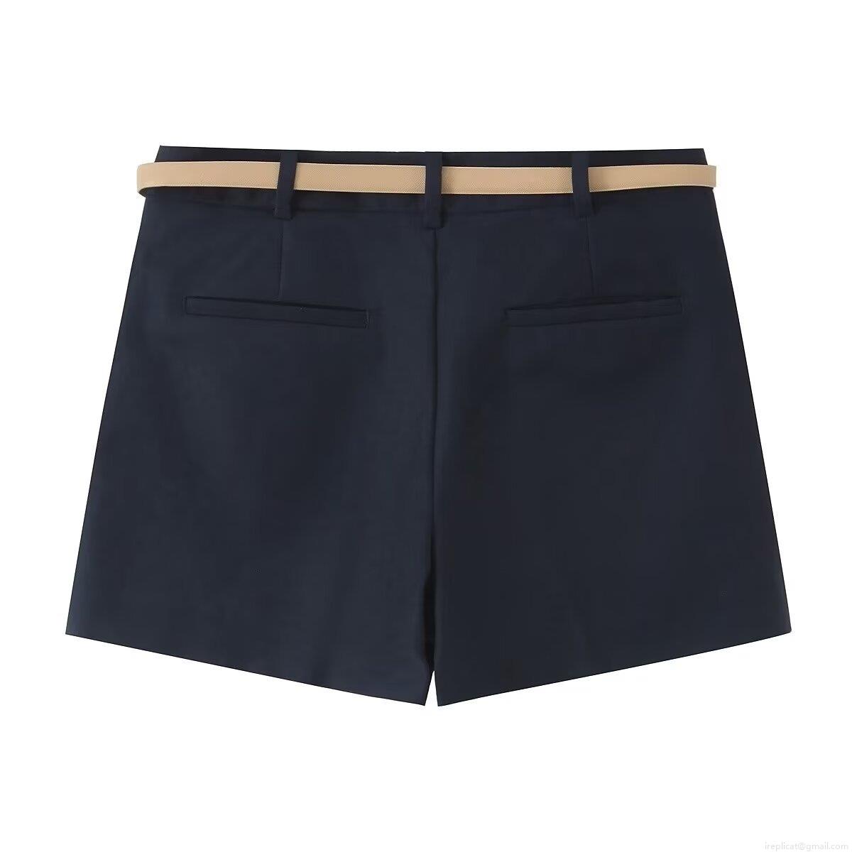 • Women's Summer Casual Suit Shorts With Belt Pleated High Waist Solid Color Polyester Short Pants For Office Daily Wear Street Style