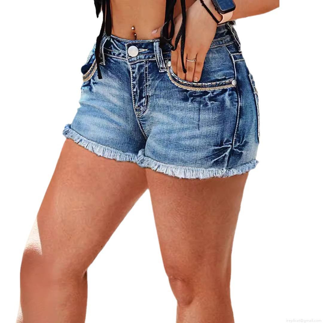 • Women's Vintage Denim Shorts Bull Head Embroidery High Waist Frayed Hem Tassel Hot Pants Summer Casual Boho Jean Shorts for Women