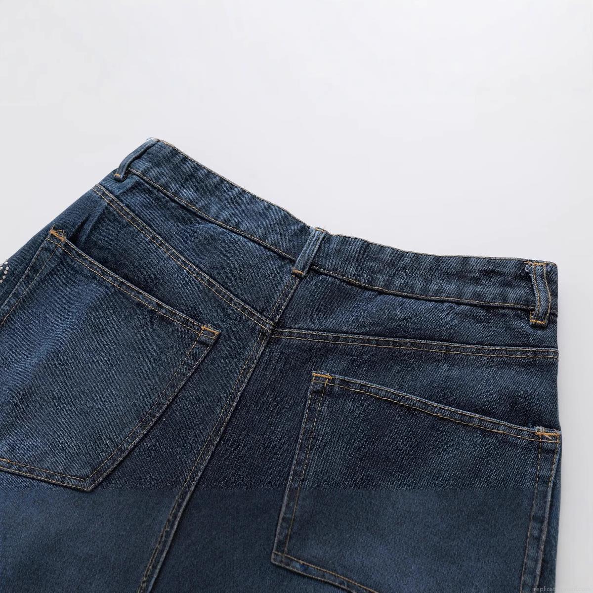 Women's Vintage Rhinestone Bow Denim Shorts Summer Casual Loose Wide Leg Jean Shorts Streetwear Dark Blue Washed Denim Culottes
