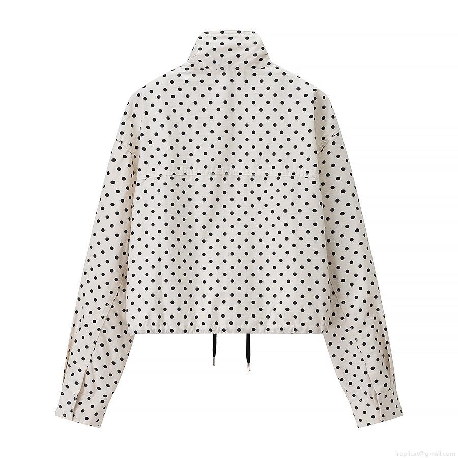 Polka Dots, Polka Dot Print, Stand-up Collar Design, Drawstring At The Hem